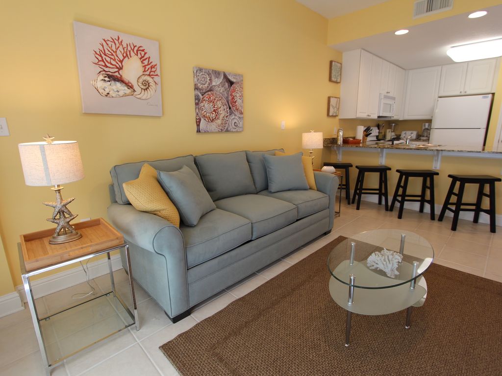 LIGHTHOUSE 616 - BEACHFRONT VIEWS, GREAT FINISHES - YOUR VACATION BEGINS HERE!!Our mission is to host you brilliantly… to make your every event and stay with us unforgettable and effortless. Lighthouse 616 captures the opulent style of this Gulf Coast community with its masterfully designed resort finishes - large balcony, master bedroom suite, open kitchen and living area, bonus bunk room, and two baths makes this condo perfect for your next trip to the Gulf Coast.Perched on the sixth floor, Lighthouse 616 is in the perfect spot to view all the action at the pool and the beach. Sunrises cast gentle lighting across the sugar white beaches and sunsets are viewed with delight from your private balcony. Open up the oversized glass doors to your living room and master bedroom and allow your senses to be awakened by the gulf breeze. Lighthouse 616 Amenities:- Fabulous direct view of the Gulf's white sand beaches.- Balcony 8'X24' across the entire unit complete with comfortable outdoor furniture - perfect for sunset dining or beach gazing - FREE Wireless Internet allows you to stay connectedLIVING ROOMPrepare to entertain in style- Colorful and comfortable beach decor- Flat Screen with DVD player- Direct TV - Never miss a game or primetime showMASTER SUITEThe Master Suite is enhanced to create a spa type atmosphere- Balcony access that allows views of the beach from your bed- Luxurious new King Bedroom Set- Full size jetted Jacuzzi tub and separate shower- Dual sink vanity- Walk-in closet- Flat Screen TV with DVD playerKITCHENEverything you need to entertain for a week- Dishwasher & Microwave- Stocked with small and large appliances- All necessary dishes, glassware, and silverware- Cooking essentials including pots, pans, etcBUNKROOMMasterfully set-up for your next family vacation- Adorable room with twin and full size bunk beds- Full bath located directly across from bunkroomAdd'l Amenities- 24hr Management Company- Full washer and dryer located in condo- Pull-out Queen Sofa BedLighthouse Amenities:- 2 pools with zero entry and fountains, perfect for toddlers and small children- Numerous chaise lounges are ready for sunning on the deck around the pools and on the beach - 2 outside hot tubs along the boardwalks leading out to the beach- 1 large indoor pool for winter- Full gym overlooks the beach so you can exercise with a perfect view- Close to restaurants, shops and activities in Gulf Shores More details