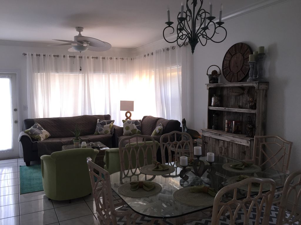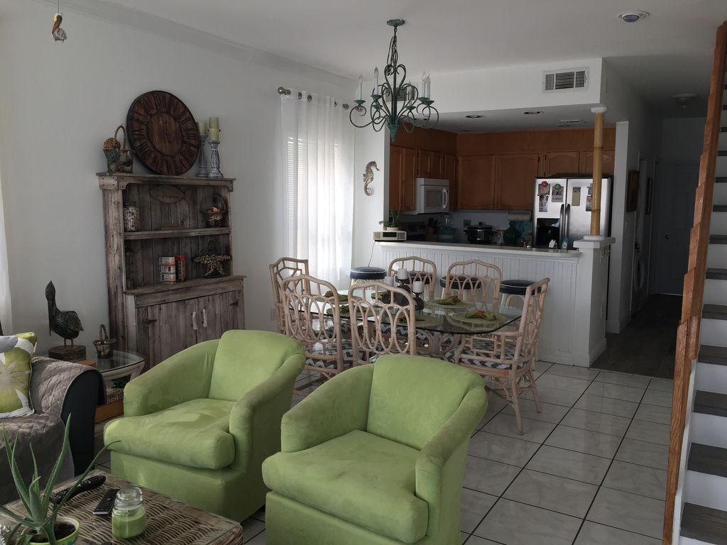 This is a completely remodeled raised beach cottage and therefore is new to vrbo and rentals. You literally can not be any closer to the beach and listening to waves lap on the shore. I have made it as comfortable as I could with large flatscreen tv's mounted on wall in all rooms, free wifi and Netflix provided. There are 3 bedrooms with additional loft and 2 1/2 baths. It sleeps 10 very comfortably. King in master, 2 twins, queen, queen futon (loft) and queen sofa bed in living room. I also have a pack n play for babies & an additional toddler mattress! There is a deck on back with balcony height chairs & table as well as a glider bench, large cooler, and grill for your enjoyment. The beach is calling your name!If you need more space, the other side of this duplex is for rent atwww.vrbo.com/846668