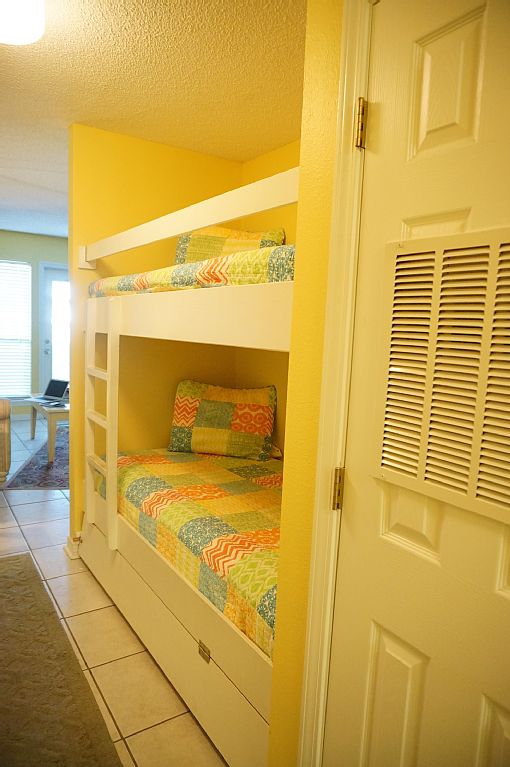 Escape from it all to this privately owned and operated one bedroom condo and you will discover Florida's best kept secret. Located just one block to the beach that does not require you to cross a major highway!The unit has updated Living Room Furniture and a King Bed and the unit also features a bunk alcove with twin beds, allowing for comfortable accommodations for up to 4 with easy access to the parking lot, pool and beach. The kitchen is equipped with everything you'll need to eat in, including upgraded appliances, and small appliances, dishes and utensils. Dining table affords comfortable seating for 4 as well as seating at the breakfast bar! Unit includes washer and dryer and all linens; upgraded wireless internet and cable. This is a non-smoking unit and no pets are allowed.This complex has it all, pool, hot tub, grilling area and best of all deeded beach access just one block away. Just a short walk from the unspoiled shores of Johnson Beach, this stretch of the Gulf Island National Seashore with sugar white sands and annual temps of 75 degrees every day is a perfect beach day! More details