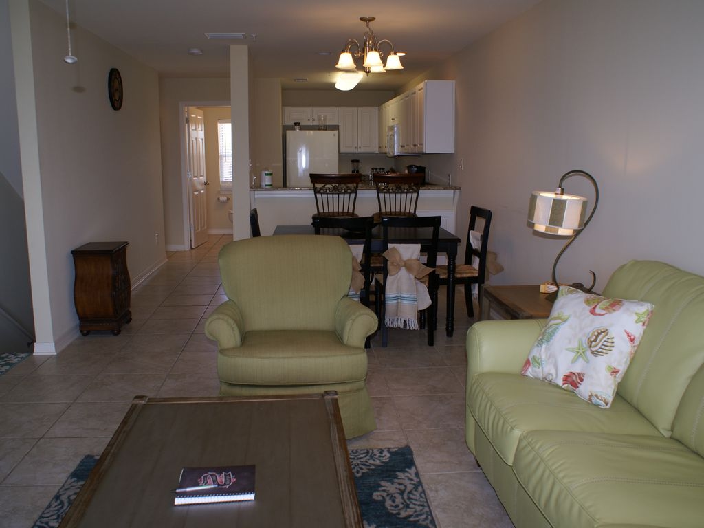 Welcome to beautiful 'Casa Paraiso' (formerly Bay View). Casa Paraiso is our spacious 3-level vacation home in scenic Perdido Key, FL. This fabulous BAY FRONT townhome is an ideal vacation property for your next visit to Perdido Key!Choosing 'Casa Paraiso' for your next get-away to lovely Perdido Key / Pensacola, FL is very easy too! We offer the very convenient 'BOOK IT' feature! Just click the yellow 'Book It' button to get a detailed quote, you can even PAY for your stay (subject to verification and acceptance), and your vacation is on it's way..... Located directly on Perdido Bay, this like-new townhome features new furnishings that can easily accommodate up to 6 guests. The complex which is nestled along scenic Perdido Bay, has an inviting inground pool, plus a lovely bayfront beach area that our guests enjoy!The bay and bay beach are great for wading, shelling, fishing and more!Let us tell you about the townhouse and the charming bay front complex called Innerarity Townhomes. Casa Paraiso townhouse features:Wi-FiCharcoal GrillNew Furnishings!Beachy kitchen with granite counters, white cabinets, tile floor and new appliancesSleeps up to 6 guests with king-size bed, queen-size bed and a queen-size sofa sleeper in the living roomOur guests are welcome to use the patio chairs and beach toys at the unit. The unit has lovely bay views since this is one of the complex's bay front units!You'll love the super, convenient location of Innerarity Townhomes where 'Casa Paraiso' is located:~ The home is less than 10 minutes from the sugar-sand beaches of Perdido Key and the gorgeous blue-green water of the Gulf of Mexico. ~ The restful setting makes it feels like you are 'Away from It All' but restaurants and groceries stores are less than 3 miles away!~ The complex features townhomes in lovely tropical colors. Some units are BAY FRONT and others are not. 'Casa Paraiso' is a BAY FRONT unit.~ The community pool is very inviting and offers areas to lounge by the pool both in the sun and under cover. You'll love that our unit is just steps away from the pool. ~ Since 'Casa Paraiso' is one of the sought-after Bay Front units, the bay and bay beach are directly behind the townhouse! The townhome is spacious and has 3-levels offering plenty of room for everyone to spread out and get comfortable.At ground level, there's tandem covered parking for 2 cars. Plus, the waterfront is directly behind the home! That's right, scenic Perdido Bay is just steps outside your front door. Along the bay is a naturally occurring sand beach. The amount of the exposed beach depends on the tide. Sit at the water's edge and watch the kids play in the sand or in the bay. Take a tan, read a book, or simply relax!Head upstairs to Level 2 (the main level) and you'll find the beautifully furnished and light filled living area. The sliding door in the living room offers views of the bay and access to the balcony. A wooden Adirondack lounge chair and swing await you on the bay front balcony. Turn off the a/c and enjoy bay breezes when the temperatures are mild. The living room features seating for 6 with a sofa that converts to a sleeper, matching loveseat, and brand new recliner. For entertainment, there's a flat screen TV with cable channels and a DVD player.The dining area seats 6, with seating for 4 at the dining table and seating for 2 more at the snack counter. The well-equipped kitchen, which is open to the dining area and living room, features granite counters, 'beachy' white cabinetry and new kitchen appliances. Also located on the main level is a 1/2 bath and the laundry area which features a full size stackable washer and dryer. Walk up the 2nd flight of stairs and you've arrived at the 3rd level of the townhouse. This level features 2 bedrooms, 2 full baths, plus another bay front balcony. The master bedroom features a fabulous 'Island Style' King-size bed, attached full bath, flat screen cable TV and balcony with fabulous views of scenic Perdido Bay.The guest bedroom will feature a brand new Queen-size bed with metal frame and comfy, new mattress. The guest bedroom also has a flat screen TV, and full bath nearby in the hallway.During your stay at 'Casa Paraiso', you will enjoy bay breezes from the balconies and large covered area at ground level. Once you get unpacked, grab your patio chair and sit at the water's edge. Perdido Bay is typically calm and shallow, so it's ideal for enjoying water activities with little ones. Spend some time wading, shelling, swimming and even fishing in the bay. There's no shortage of things to do right there at the complex!But, if you decide to explore the area, you'll love the condo's convenient drive to these places: ~ Just a quick 7-8 minute drive to the beautiful beaches of Perdido Key, FL. ~ Just 10 minutes to the Naval Air Station and Naval Museum in Pensacola, FL.~ Just 20 minutes to the historic district and downtown Pensacola!~ Just a 20 minute drive to Flora-Bama and Orange Beach, AL. ~ Just 25 minutes to Gulf Shores, AL.Give us a call, send an email, or use the Book It feature and reserve 'Casa Paraiso' today for your Perdido Key get-away!Keywords: townhouse, townhome, Perdido Key vacation rental, Pensacola rental, furnished home, waterfront, waterviews, pool More details