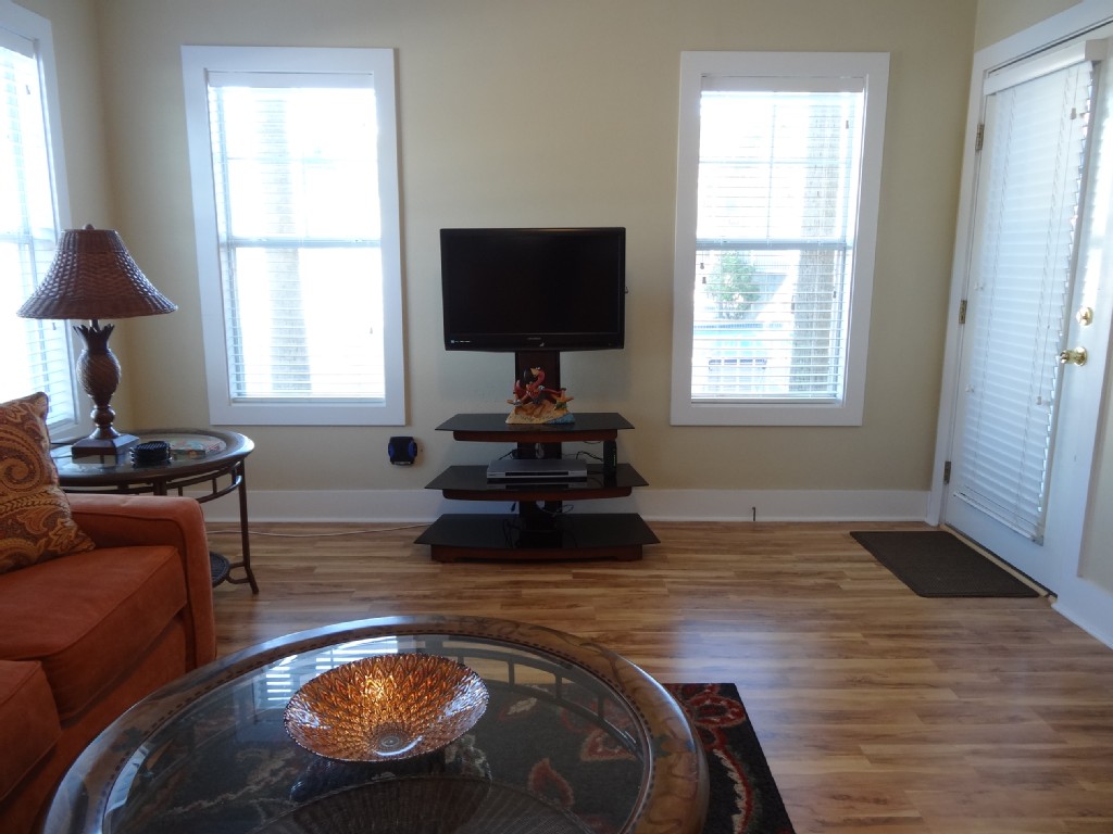 If you are looking for an affordable relaxing vacation with an amazing tropical paradise right outside the front door, you have found the perfect place! Welcome to Sea-Brook, Purple Parrot 19A. We offer great rates AND a poolside location!The Purple Parrot Village Resort is a unique gated tropical resort with 114 caribbean style villas. The villas surround a 5000 square foot oasis swimming pool complete with a waterfall cave and a bridge accessible hot tub. The resort also features an indoor heated pool and hot tub in the pool house which also includes saunas, changing rooms, showers, and a fitness center. The Purple Parrot is a family friendly resort also great for couples or a girls getaway.The Tiki Bar is on-site poolside with beverages to purchase and live entertainment on various nights of the week.Our clean, well-maintained condo, Sea-Brook, is on the lower level of a two unit villa. Nestled among the palm trees surrounding the pool, our location is second to none as we are one of only a few condos with a prime poolside location. The gate to enter the pool is just outside our screened in porch. Relax and enjoy the music playing from The Tiki Bar. The spacious Living Room is furnished with a Queen Sofa Sleeper and Two Reclining Chairs and looks out onto the pool area. There is a 36" flatscreen television and also a dvd player. The kitchen is fully stocked and has a new sink and granite countertops. The kitchen is equipped with a crock pot, utensils, and all small appliances that you may need during your stay. There is a queen bed in the bedroom as well as a 22” flat screen tv. There is also washer and dryer inside of the condo.There is free wi-fi available. The Purple Parrot Resort is NOT located beachfront. There is beach access about 1/4 of a mile away. The best beach, by far, is Johnson Beach which is located in The Gulf Islands National Seashore, which is about a 2 minute drive from The Purple Parrot. There are restrooms, showers, picnic tables, a walking trail, and covered pavilions. They charge $15 per car for a pass which is good for a week and it is well worth it. An absolutely beautiful stretch of open beach.World class golf courses, marinas, restaurants and grocery stores are within a mile of the resort. The Naval Air Station where the Blue Angels practice is about 15 minutes away.Please check our calendar for availability. We can be reached most efficiently by e-mail. I will respond as soon as possible. If you prefer to be contacted by phone, just let me know. Otherwise I will e-mail you a quote for the dates you are interested in.Come stay at Sea-Brook and enjoy all that the Purple Parrot and Perdido Key have to offer. More details