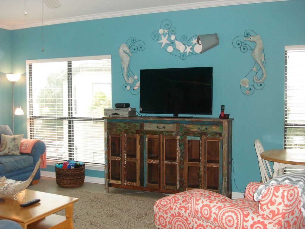 If you are looking for a peaceful vacation with no crowds and no elevators you have found the perfect getaway. The Molokai Villas are a low-rise community consisting of 21 units and the ideal place for you to enjoy both the Gulf of Mexico and the Ole River. Molokai Villas are located on the west end of the island near the Florida/Alabama line for easy access to Perdido Key, Pensacola, Orange Beach, and Gulf Shores. Our villa is located on the riverside and overlooks the beautiful newly renovated swimming pool with breath taking views of the river and Ono Island. The river side features a swimming pool, deep water boat slips (available on a first come first serve basis), a lighted fishing pier perfect for fishing and crabbing, and plenty of open area for your kids to play! Ole River is perfect for boating, skiing and sailing. Across the street is our private gulf front access that has a dune walkover to enjoy Perdido Key's beautiful sugar white sand beaches. Whether you enjoy sunning on the beach or waterskiing down the Intracoastal Waterway, Molokai Villas provides lots of variety for your next Perdido Beach vacation! Our villa has been newly upgraded and has 2 bedrooms, 1 ½ baths and tile floors throughout except for the bedrooms. The living room and kitchen occupy 1 large open room that allows everyone to be together!! The living room has french doors that open to the balcony with beautiful views of Ole River and the pool. It also has plenty of seating, TV, cable, DVD and wireless internet for your entertainment. The kitchen is well equipped with everything you will need to make a wonderful meal. The master bedroom has a king size bed, TV and a ½ bath with french doors that open to a large balcony. The master also has a large dresser and closet for all your belongings. The second bedroom has a queen bed with a large dresser, closet and TV. Our unit also has a washer and dryer for your convenience. Beach chairs and towels are provided for our guests and at the bottom of the unit there is a outdoor shower to wash off the sand. We are certain that our cheerful decor will make this the perfect vacation spot for you to come year after year!! If you have a large family OR want to travel with another family and you are looking for another unit...Please look at my downstairs condo.. VRBO # 656151. This way you and your entire family OR friends will be under one roof!!!No Smoking or Pets. More details