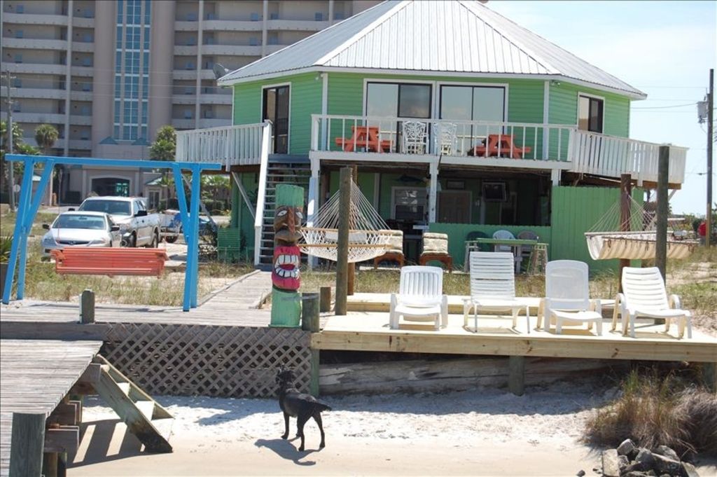 Private home across the street from the beach. Riverfront with boat and RV slip for you to use during your stay. Nestled on the white, sandy beaches of Perdido Key, this is the ultimate beach house. Upstairs there is a large living room with two pull-out couches, two bedrooms, a loft with two full beds, a full kitchen, and a bathroom. Downstairs is a separate apartment with a king bed, bathroom, and laundry room. No beach getaway is complete without plenty of outdoor living space. Upstairs has a large wrap around porch with a 360 degree view of beautiful Perdido Key, Ole River, Ono Island, and Orange Beach. Downstairs there is a huge covered outdoor space perfect for reading, boiling shrimp, grilling out, or just getting out of the sun for a few minutes. There is also a large uncovered deck and a pier over Ole River with fish cleaning station and a boat slip large enough for any center console. The driveway extends alongside the house and has a 30amp hookup for a motor home or RV. The beach is easily accessible and there is a chair rental station just across the street. Also within walking distance is the World famous Flora-Bama Lounge, the Flora-Bama Yacht Club, the new Ole River Bar, the Flora-Bama Lounge and Package, a Waffle House (exciting, right??), and a couple of gas stations. Feel free to call or email with any questions.Keywords: Perdido Key, Orange Beach, Beach house, Flora-bama, flora bama, florbama, cottage, bungalow, boat slip, RV, boat house, waterfront, water front, pier, motor home, ole river, fish, camp, fishing More details