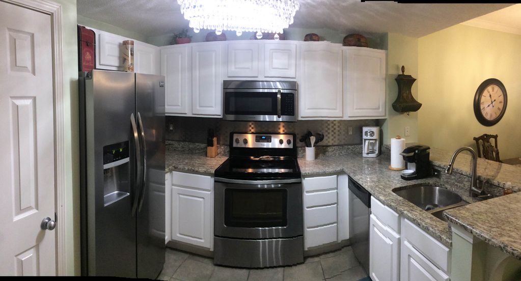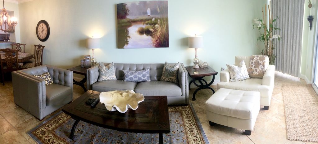 The Palacio is a luxury, beachfront condominium complex. We invite you to enjoy our spacious,(1,571 sq. ft.) newly renovated, 3 bedroom, 2 bath vacation home with spectacular 8th floor ocean views. All new stainless appliances, granite counters and beautiful lighting in fully equipped kitchen. Open floor plan with large dining and family room area, plus a wet bar, decorated in 'beach chic' casual elegance. The family room includes a large, flat screen TV with DVD. DVDs and a book selection are available for your enjoyment.The gigantic Master Bedroom offers a king size Tempur-Pedic mattress. Watch TV on the 40 inch flat screen or sit on the chaise lounge next to the floor- to-ceiling windows and take in the incredible views of the ocean. The master bath offers separate vanities, a large whirlpool tub, huge shower and private toilet closet. Bedrooms 2and 3 have queen size beds and flat screen TVs, new comforter sets and linens. Spacious guest bath with tub-shower combination. Laundry room with full size, top of the line Maytag high efficiency washer and dryer. The Palacio offers both a relaxing family pool plus a separate lap pool. Guests can also enjoy the onsite fitness center and tennis courts. Beach chair service is available. More details