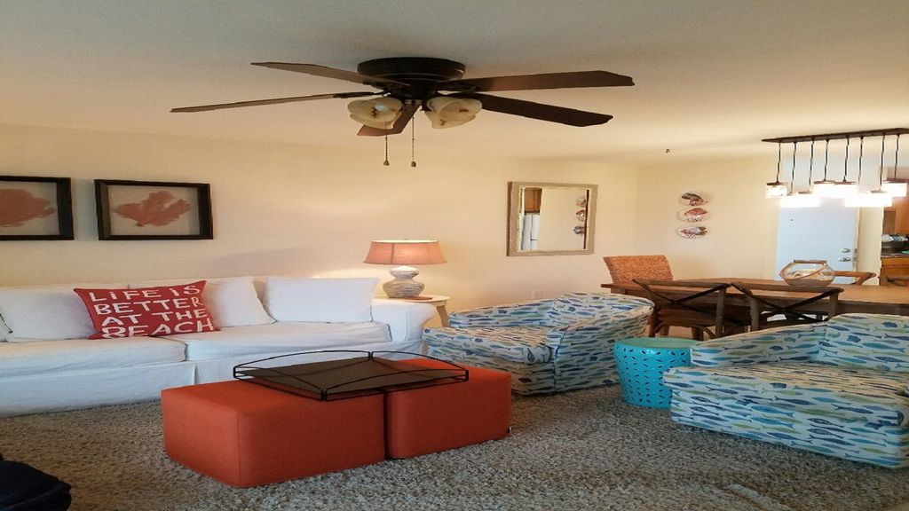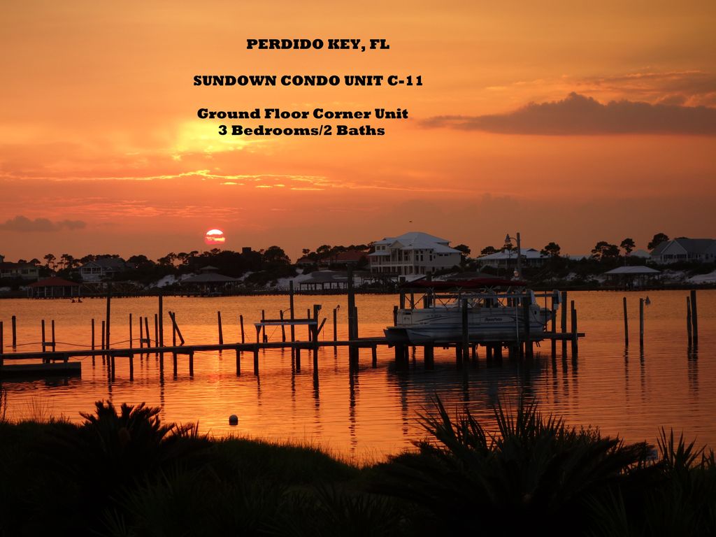 Our condo (C-11) is one of the best kept secrets in the Perdido Key/Orange Beach area. We are 200 YARDS from the beach and only 50 yards to one of 2 private piers on Ole River. We are across the street from the beach but it is very close, we have our own private (deeded) boardwalk to the beach. The property has an oversized pool, tennis courts, a basketball court, and grills. C-11 is one of the few Ground Floor, 3 bedroom/2 bath corner units. The balcony is enormous (180 square feet) and is literally feet from Old River. The views of the sun setting behind Ono Island are incredible (see the attached pictures from our balcony). Everything in C-11 is brand new. There is King, Queen, Bunkbeds, and 2 sleeper sofas. C-11 sleeps 8. Each room has an HD flat screen smart TV (47' TV -Living Room, and 3x 40' TVs in each guest room). Cookware is top of the line and is primarily Calphalon brand. The outdoor chairs are custom made 'counter height' chairs so your view is not obstructed by the balcony railing. Grilling, access to the pool, parking lot and the pier are exceptional from C-11 because of it's corner and ground floor location.