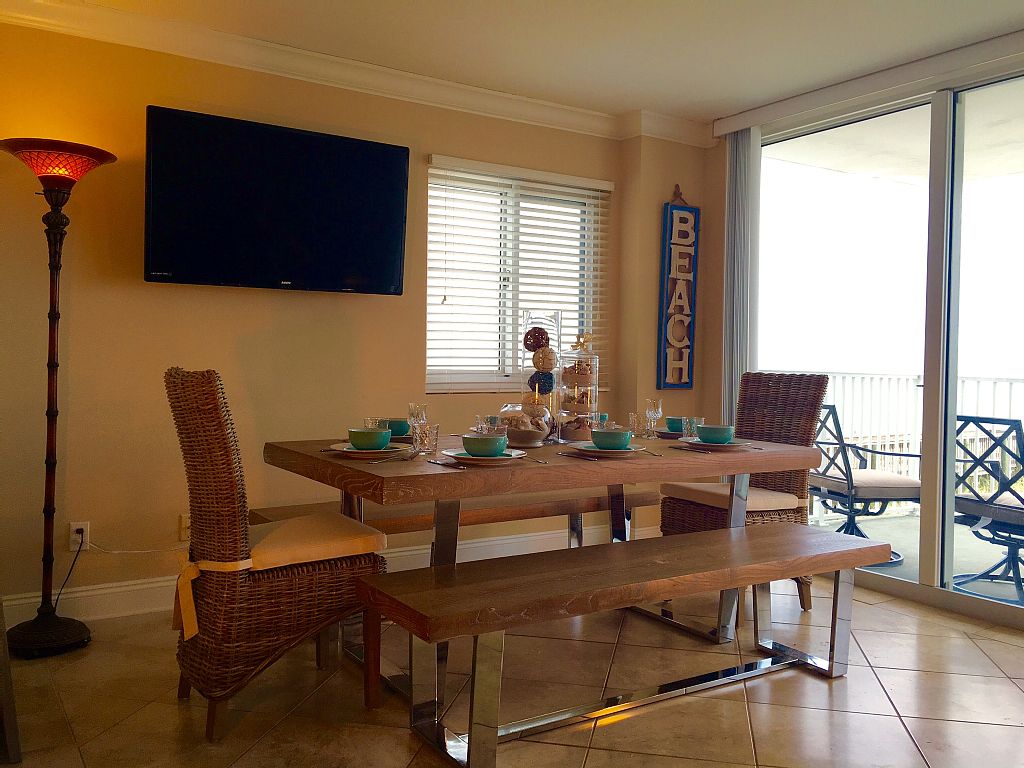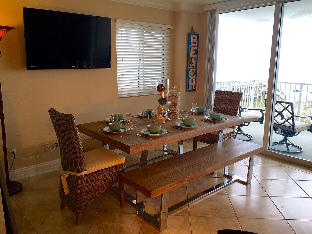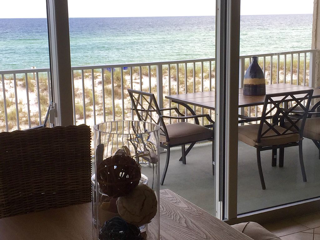 Come and enjoy "Sandcastle"! This bright, beautiful, stunning oceanfront Starboard Village condo located directly on the sugar white sands of Pensacola Beach. This huge 2 bedroom condo sleeps 8 with private garage parking and an additional assigned parking space. Please take a 3D tour by cutting and pasting the below link into your internet browser or by clicking on the direct link on the bottom of the page:https://my.matterport.com/show/?m=9p1yZE66FGNThis condo has been completely renovated and ready for your stay. Fully stocked and adorned with all the luxuries of home - wireless high speed 50meg download internet throughout. The condo provides sleeping arrangements for 8 people:(2) Master bedroom king size bed(2) Master bedroom full size pull out futon(2) Spare bedroom king size bed (2) Living room queen size pull out sleeper sofaSandcastle has a master bedroom with a king sized bed and a full size futon. The spare bedroom also has a king sized bed. Each bedroom has a private bath. Each bath is fully renovated with an all tile, walk in spa-like shower. Master bath has dual vanities. On the main living area that is an additional half bath for easy guest access. In the main living area there is a queen sleeper pull out sofa with memory foam topper added for extra comfort. The open kitchen has beautifully upgraded granite countertops and is fully equipped with all the tools to prepare and entertain from your home away from home at Pensacola Beach. Enjoy your morning coffee while the sun rises from your balconies (2 of them!) over the Gulf of Mexico or your evening cocktail while watching the sun set on another day in Paradise! The main living area has a huge balcony that over looks the Gulf of Mexico and the pool area. It has seating/dining for 6. The master bedroom has a an expansive private balcony that also overlooks the Gulf of Mexico with a bar height bistro set for 2.Sandcastle has a private garage with an additional assigned/numbered parking space.Perfect condo for a multi family getaway!If "Sandcastle" is booked, please check to see if any of our other amazing condo's are available:"Sunswept" Gulf front 4 bedroom at Beach Club Towers VRBO # 928539"Sunset" Gulf front 3 bedroom at Sans Souci VRBO # 937968"Starfish" 1 bed / 2 bath Gulf Front condo at VRBO site 750046"Serenity" Bay front at Santa Rosa Dunes VRBO number 828835"Summerchase" 1 bed / 2 bath Bay Front condo at VRBO site 895630 More details