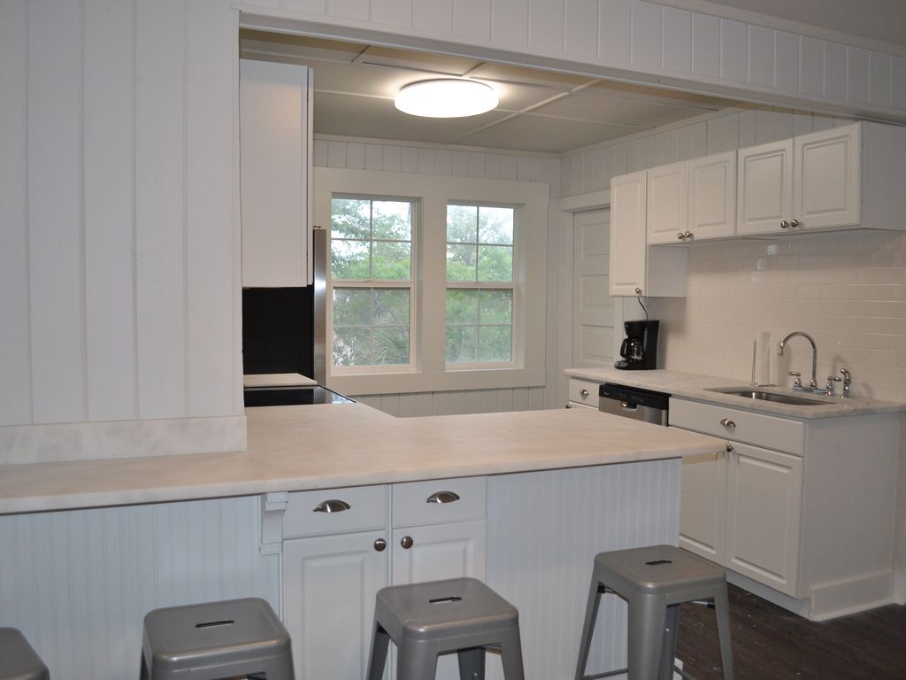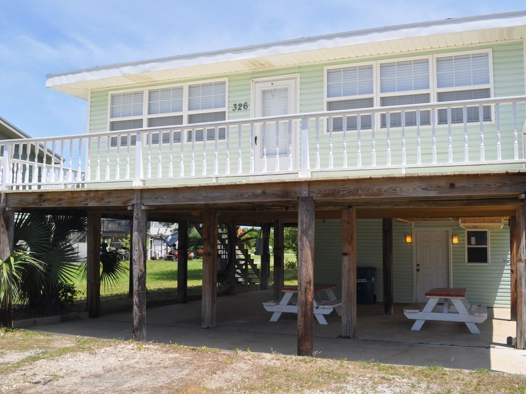 Full renovation completed in spring 2016 - house like brand new in an amazing location!!! Located in the heart of Gulf Shores and in walking distance to many restaurants, shops, ice cream, and mini golf. Beautiful white sand beach and Gulf of Mexico are just across the street!! The ocean can be seen from the front deck! Walk to the Hangout and Shrimp festivals - only 3 blocks away! This home comfortably sleeps 6-8 people with a queen bed in master, 4 twins (2 bunk beds) in guest room and a brand new sleeper sofa in living room. Beautiful kitchen with marble countertops and brand new stainless steel appliances. A short drive away from Gulf State Park and fishing pier (1 mile), Waterville (1 mile), and Tanger Outlets in Foley(9 miles)!!!