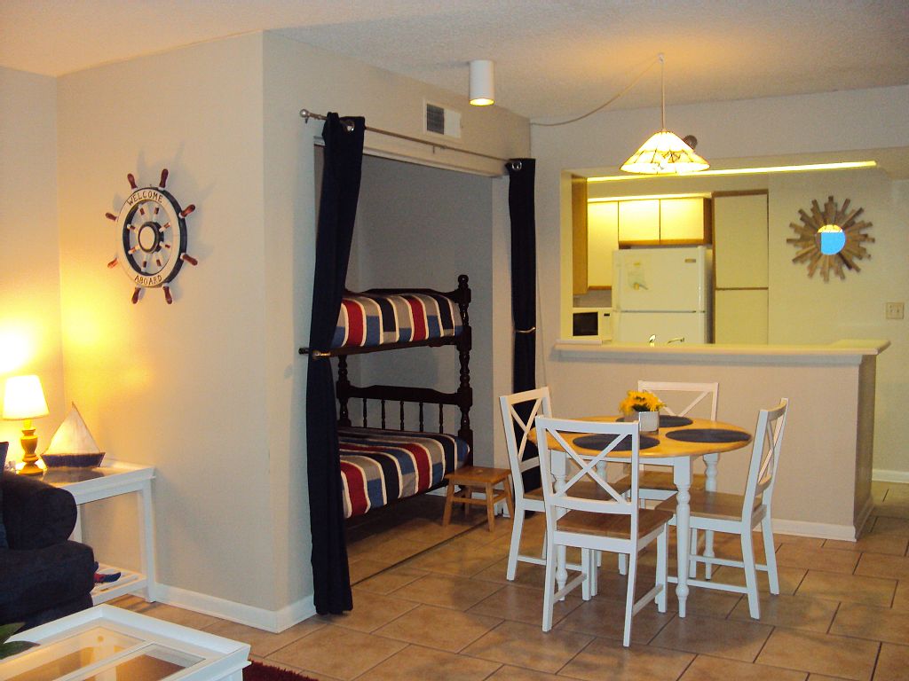 Relax and enjoy the experience of the hot sun, white sand and clear waters of the Gulf of Mexico. The view from this 4th floor balcony allows the greatest beginning and end to any day from watching the dolphins at sunrise to the most beautiful sunsets to end a perfect day. All Summer and Holiday Rentals are booked from Saturday to Saturday Only.This location sleeps 6 with 1 king size bedroom, 2 bunk beds within the unit and a pullout sofa.Conveniently located accross the street is a new shopping center that includes beach goods, appareal and dining. Keywords: Perdido Key, Perdido Sun, Beach Front, Florida, Indoor Pool, Outdoor Pool, Hot Tub, Beach Service, Workout Area ,Pristine white beaches