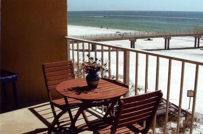 YOU WON'T FIND A BETTER VIEW AT ANY PRICE!!!Our condo is directly on the Gulf of Mexico and the beach is only a few steps behind the condo. Emerald Skye is a low density (only 37 units). Even in the summer the beach is not crowded like the big high rises. The condo is conveniently located in the heart of Orange Beach and less than 1/2 mile from three grocery stores and two pharmacies. 'Our Little Get-A-Way' is perfect for a couple or small family. Additionally, since the condo is located on the second floor, you will not have to wait for an elevator. Enjoy the panoramic views of the Gulf from the living area or balcony. From the moment you open the door you will know this is not an ordinary rental unit. We love the condo and treat it as our second home. The large balcony is comfortably furnished for relaxing and enjoying the view. We even have a table for two for romantic evening dinners! The condominium is very nicely furnished and decorated. The living area is very comfortable and has a 40' flat screen TV and DVD player. The kitchen is fully equiped with custom cabinetry and an over the range microwave. The bedroom is private from the rest of the condo and has a king-size bed, 32' flat screen TV, and DVD. The hallway bunk beds are great for children and can be separated from the living area by a pocket door.Emerald Skye has a heated pool (March - November), picnic area with charcoal grills, and a nice beach side lounge area to sit and read or enjoy the beautiful view. Additionally, we provide access to our ground floor store room, which contains two very nice beach chairs and umbrella. A fitness room is located on the ground floor. It is equipped with treadmill, elliptical machine, and stationary bicycle. A full range of hand weights and bench is also available. This unit is non-smoking except on the balcony. Sorry, no pets permitted.Keywords: Condominium More details