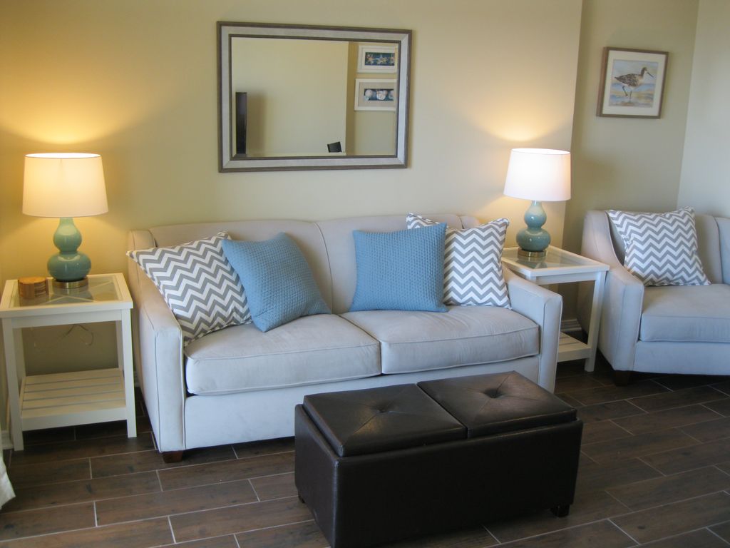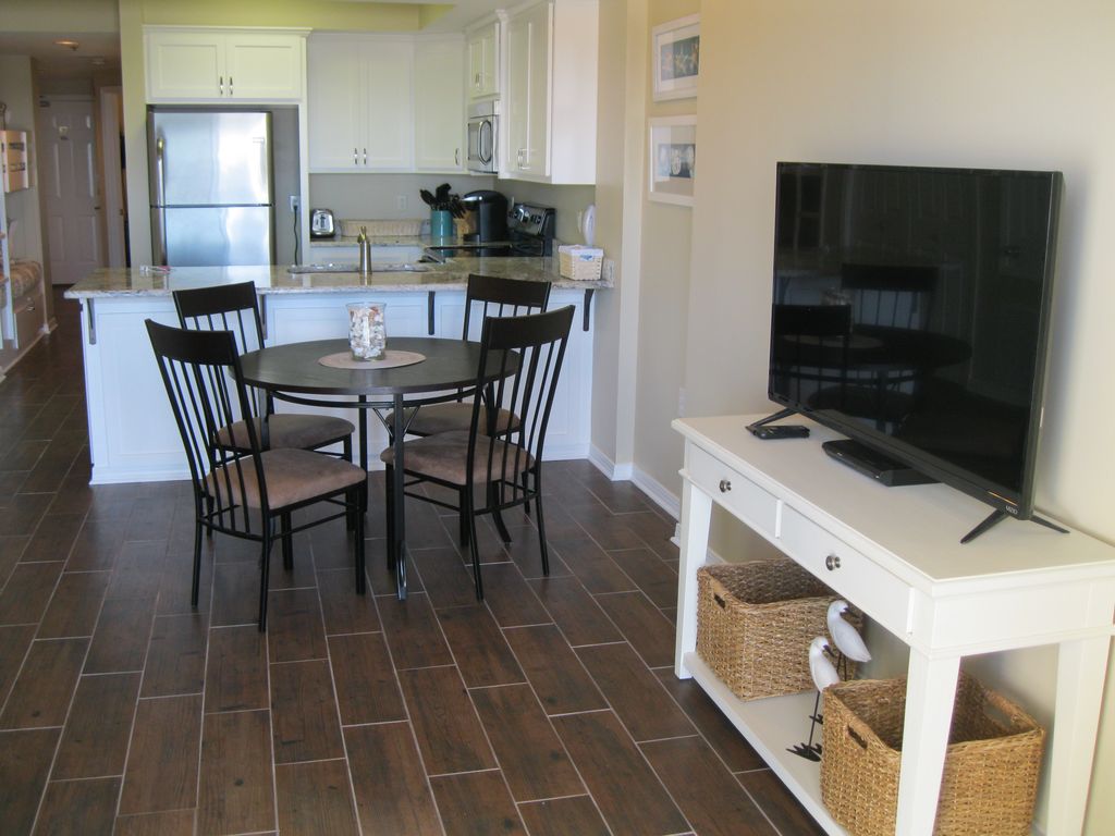 You are going to love this newly remodeled condominium for your vacation getaway! Our water front unit is on the 3rd floor and has amazing views of the white gulf sands and beautiful water. It's great for dolphin watching especially in the calm, morning water. You'll be in the heart of Orange Beach but not surrounded by a ton of other large condos, which means a beach that's not too crowded.Brand new remodel in 2016 including tile floors, kitchen cabinets and granite, bathroom, living room furniture, dining table, mattresses and bedding, and decorations. We can't wait for you to see it and enjoy.The kitchen has granite counter tops, stainless steel appliances, plenty of storage, and is fully stocked, including a Keurig coffee maker (as well as a standard coffee maker) and a blender. The living room has a queen sleeper sofa, 48-inch flat screen smart tv, gulf front view, and a glass sliding door to the covered, private balcony. The master bedroom has a queen bed and 32-inch flat screen smart tv. There is a set of twin bunk beds in the hallway. And, the unit has a full size washer and dryer. Tidewater has all the amenities you need - gulf front, 2 pools (1 indoor pool, 1 outdoor pool), indoor hot tub, workout room, sauna, outside grill/picnic area, and Wi-Fi internet. Up to 2 cars are allowed. Beach service for chairs and umbrellas is available (separate fee with that company). The parking lot has gate coded entry with updated security cameras, and security guards are onsite most hours.You will be conveniently located to grocery stores (the closest is just about 1 mile away), a multitude of restaurants (tons of seafood options), shopping, and entertainment. We look forward to your stay at our home away from home. Let us know of any questions. Please feel free to view our 2 bedroom condo at Summerchase as well (VRBO #686544). More details