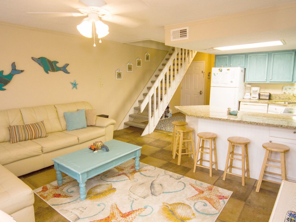This beautiful townhome is in the ideal location for experiencing the FABULOUS Gulf Shores! We are right across the street from the sugar white sand & sparkling blue-green waters of the gulf of mexico. The Sands has an authentic beach town feel in this quaint private complex of only 16 units! Private entrance with KEY-LESS ENTRY so you don't have to worry about losing your keys! This is a 2 story town home with no one above or below it.SUPER PRACTICAL LAY OUT!!! This condo is perfect for the multi-generational vacation w/3 nice sized bedrooms & 2 full baths.The main floor bedroom is ideal for the grandparents w/a comfortable queen sized bed, flat panel TV and private entrance to a full bath! The Master & 2nd bedroom are located upstairs w/a full "jack and jill" bath between them along with full sized washer and dryer.There are also 2 flip out chairs suitable for children, a Pack n play and nursery monitor located in the Master bedroom. Beautiful granite counter tops in the fully equipped kitchen w/extra deep sink & high end spray faucet. When we say fully equipped we mean ice maker, blender, toaster, coffee maker, crock pot, oils & spices all for your use! We also provide dishwasher, laundry, & hand soap to get you started :) Full sized washer and dryer located in the upstairs hall closet between the bunk room and master bedroom. This unit has 2 private balconies, one off the living rm and the other off the master bdrm. There is a gas grill located under our unit exclusively for our guests! An outdoor shower is also located under the unit for rinsing off beach sand, again just for our guests. Parking for 2 vehicles in a SAFE, low density complex. In the storage closet under the unit you will find beach chairs, boogie boards, umbrella & sand toys to help you enjoy a fun day at the beach! We have tried to think of everything possible to make your family vacation enjoyable, even providing BEACH TOWELS!!!Want to come for one of our world famous festivals? Then this unit is BY FAR THE BEST LOCATION because you can reach it by taking Windmill Ridge Rd. & bypassing all the traffic on West Beach Blvd! We are w/in walking distance of many of the famous Gulf Shores HOT SPOTS including, The Hangout, Bahama Bobs, Pink Pony, & Pier 33 as well as fun souvenir shops! Pristine white sandy beach is about 80 steps away from our stairs & an easy walk w/in the safety crossing zone to cross the street. Clean & convenient showers & restrooms are also located beach side. Just the PERFECT place for a FAMILY VACATION :)Come make some memories at The Sands!!! More details