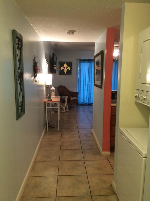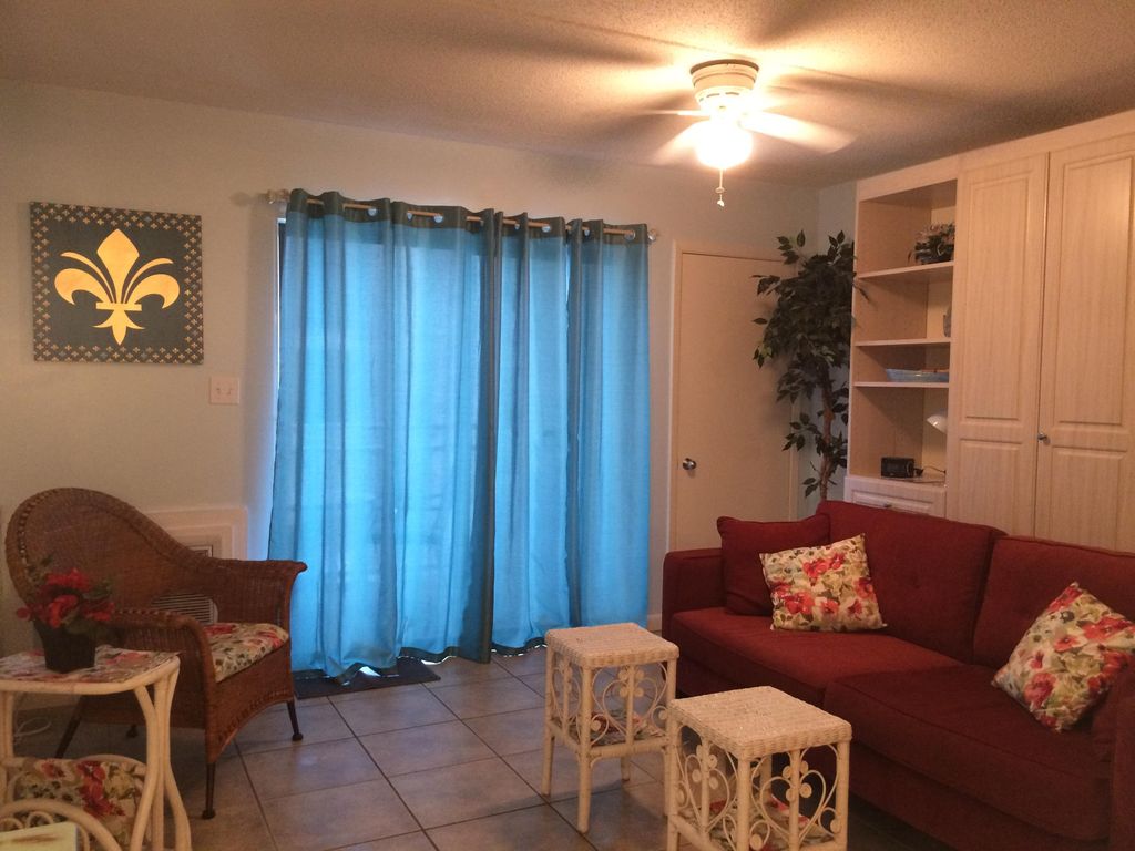 Welcome to our vacation home, 'Condeaux on the Beach III.' We have decorated our unit in a beautiful sea foam blue and coral coastal interior, with a touch of New Orleans flair! Our condo is the perfect romantic retreat for 2, or a relaxing and fun get away. You will simply love the white sugar sands of Orange Beach! Our condo is located on the 2nd floor of the building in the middle over looking one of the 4 pools. We have taken great pride in updating the interior, and to ensure that every comfort of home is accommodating to you. Our cozy pool side Studio vacation home is freshly painted, and has a comfortable sofa for relaxing and watching the 42'' HDTV, with 2 small tables, a cozy chair with side table, and is amazingly spacious! At night, simply slide the sofa forward and we have a queen sized Murphy bed with a luxurious 4" memory foam mattress topper for a restful night's sleep, with enough room to sit on the sofa and move around. There is an abundance of space for your clothing with a full size closet, and 2 chest of drawers built in to the Murphy Bed unit. The bathroom is calmly serene and stocked with many amenities. Our kitchen is very vibrant and fully equipped with a coffee maker, toaster, and everything you need, making it a joy to prepare meals, or a romantic dinner! For your dining indoors there are 2 bar stools at the counter. The balcony is accessible from the living area and provides a beautiful relaxing view of one of the 4 pools that Sugar Beach has to offer. Enjoy dining outdoors, having coffee or tea, and taking in the relaxing views to realize there's no other place you'd like to be! Additionally, our vacation home has FREE wireless internet and cable television! All linens are provided with the exception of beach towels. There is a covered entry, covered parking, 2 elevators, and luggage carts are available to assist in loading and unloading your vehicle. A $20 parking pass is required, which you must obtain and pay CASH for at the guard house upon arrival. It is good for the duration of your stay. This is a non-smoking unit. We are certain your stay at Condeaux on the Beach III will exceed your expectations and make memories to last a lifetime! *We also own another studio at Sugar Beach (VRBO#604870), as well as an elegant 2 bedroom/2 bath condo on the beach, with a fireplace and large balcony, in Harbour Place Condominiums (VRBO#487177), 3 buildings away in Orange Beach!! SEE our excellent reviews!! More details