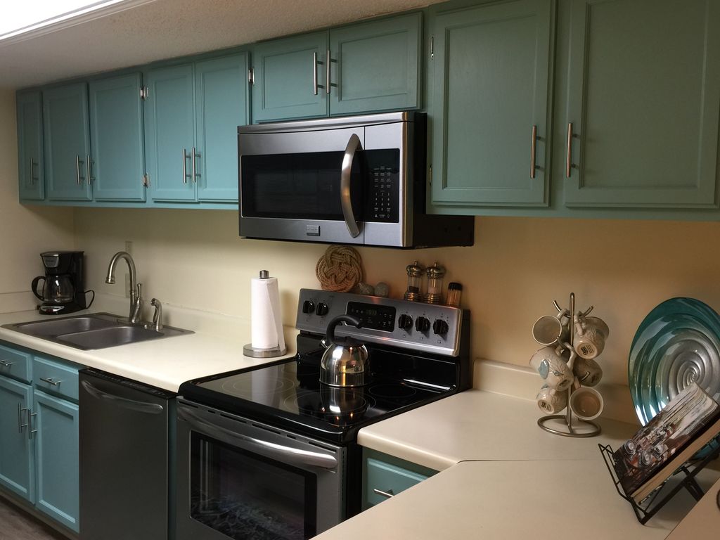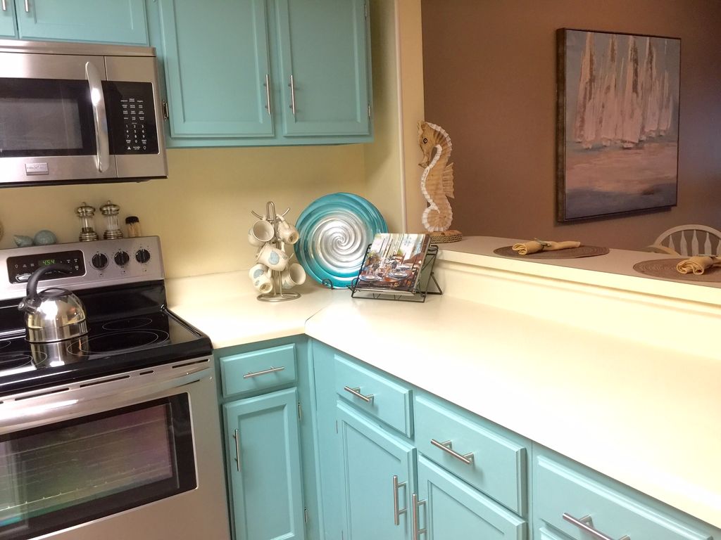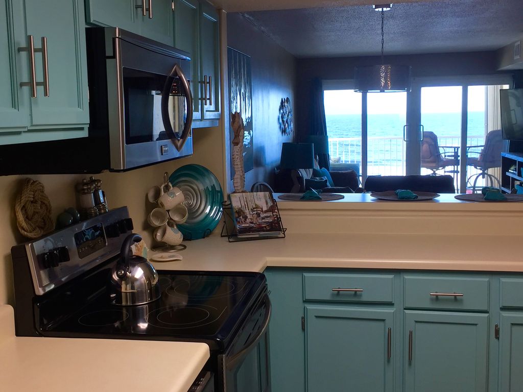 Castaway’s Condominium is a 36 unit complex located in the heart of Gulf Shores. Our newly remodeled 2 bedroom condo is on the beach where the view is wonderful with the ocean being just a few steps from the pool. Since this is a low-density complex, there are no crowds, and no long walks so you'll be on our large, private beach in minutes!With the incredible beach front view and the comfy sofa, table and chairs, our balcony is sure to be a favorite spot during your vacation. You will enjoy relaxing while listening to the surf and be sure to look for the dolphins playing in the ocean during the morning hours. This third floor balcony is perfect for observing family and friends in the pool area. The open layout in the living area is great for visiting with family and friends and features an expansive beachfront view, a 55” Flat Screen TV, DVD player and sleeper sofa. The kitchen has new appliances and updated cabinets which contain all new cooking essentials and the small appliances you will need plus a washer and dryer. The flooring is new and all the walls are freshly painted. The spacious master suite with all new furnishings and decor has two queen size beds and features a large oceanfront window, a 42' flat screen TV, private access to the balcony and walk-in closet. The second bedroom has a king size bed with a twin bunk over it plus a 32’ flat screen TV. Each bedroom has a private bathroom with double vanity sink, plenty of storage and a separate bath area. Netflix accounts are set up on every TV and wi-fi is included. We have also provided our guests with board games, books, magazines and movies for added relaxation. You will enjoy the beachfront swimming pool which extends underneath the condo for relief from the sun. Lounge chairs are available on the deck and tables with seating available in the shade with two charcoal grills nearby. Beach chairs and umbrellas are available for rental along with jet-ski’s and parasailing. The Alabama State park is just minutes away with a great fishing pier. Bicycles and motorized scooters are available for rent just across the street.Being just 1/4 mile from the main beach intersection we are within walking distance of many souvenir stores and restaurants including a favorite spot, The Hangout, which has live music, outside dining, shopping and a variety of entertainment for the whole family. Also we're just a short drive away from the zoo, water and amusement parks, movie theaters, many golf courses, deep sea fishing plus many shopping options including an outlet mall with over 120 stores. We furnished and stocked this condo with your needs in mind ~ your vacation starts here!! More details