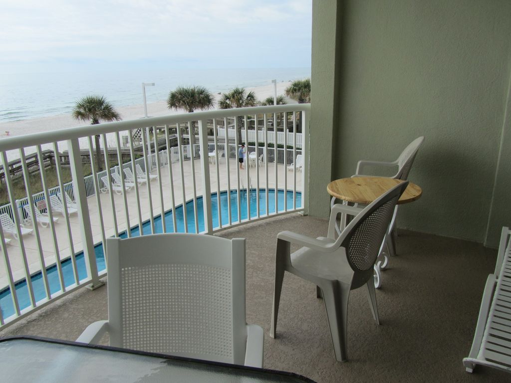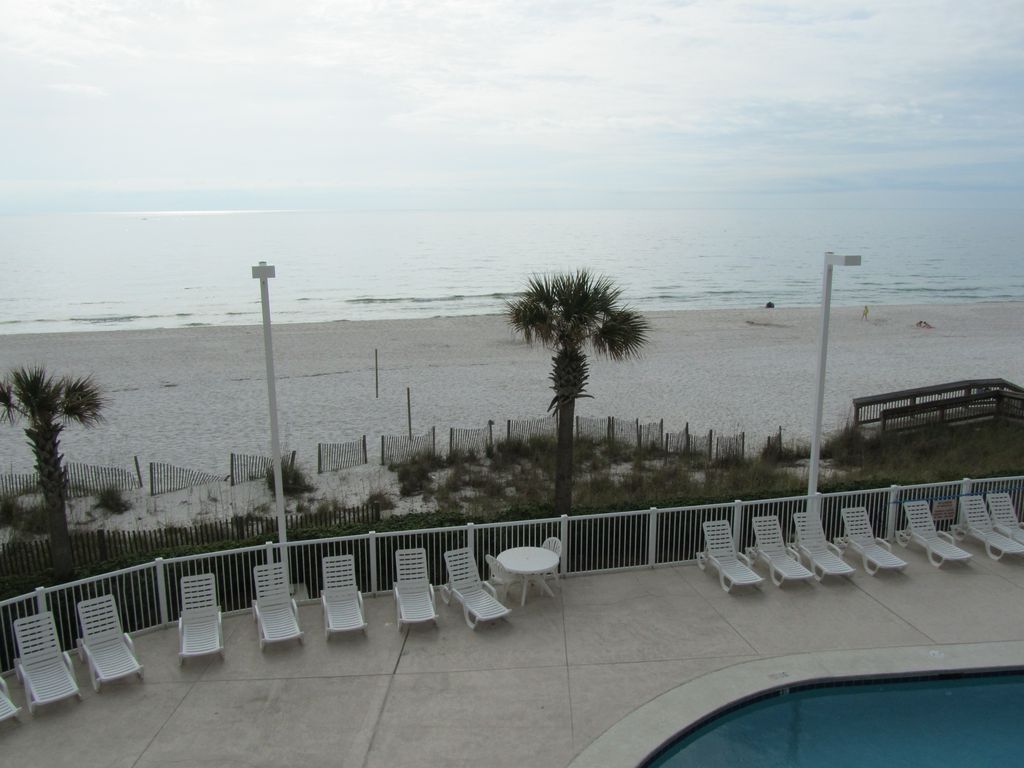 DIRECT OCEAN FRONT CONDO OVERLOOKING THE POOL The condo is a 1 bedroom 2 bathroom unit. queen bed in the bedroom, bunk beds in the hall for the for kid, an a queen sleeper sofa in the living room.the unit will sleep 6 comfortably. WIFI is available The views from the balcony are beautiful.We are located in the heart of Orange Beach. Right across the street from Alvins Adventure Island, Fat Daddy's pizza/game room and Bubba's Seafood RestaurantMany of the Orange Beach restaurant and attraction are just a short drive away. We are minutes away from the Foley Express and the Wharf, where you can ride the Ferris Wheel, go to a movie, shop, eat or take in live entertainment. The state park is down the street for fishing on the pier, zip lining, and paddle boats. WATERVILLE water park is with in 5 miles if you like to do water slides and surfing.Walk across the street to alvins adventure island for putt putt, go carts and arcade games. Walmart, Winn Dixie and Publix Grocery store are right down the street from the condo. Tanger outlets are in Foley on Hwy 59. (about 15 minute drive)The winter months are great for snowbirds. It's a quite and peaceful place to escape the cold winter months. You can go to gulfshorescom for daily updates and video of the beaches.Keywords: Condominium More details