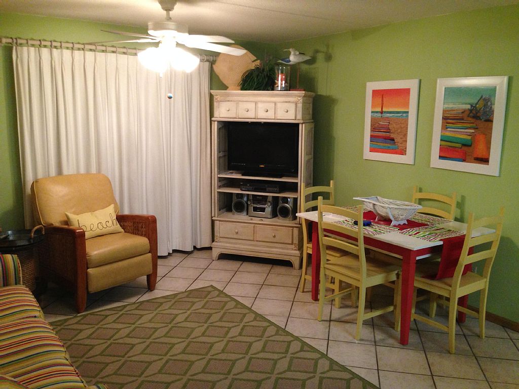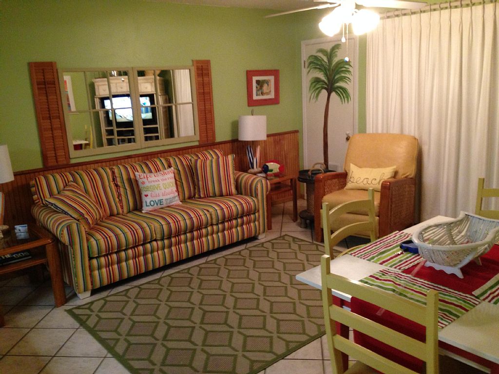 Just steps to the beach, this beautifully island decorated, second floor condo, is in the Sugar Beach Condominium Complex. This complex is located directly on the beach. It also has 3 large pools (one heated) kiddie pool, tennis court and reserved parking.Our condo is a spacious 2 bedroom, 2 bath that comfortably sleeps 6, with 2 queen sized beds, and a full sized sofa bed. This unit has everything you need and may want like, Air conditioning, Heating, Linens, Free Wireless Internet, 3 TVS with Cable, VCR, DVD player, I-Pod speakers / Radio / CD player, A fully equipped Kitchen with dishwasher, top stove, and refrigerator, microwave, coffee maker, blender etc. It also has a large balcony with a partial ocean view. Washer and Dryer, Iron, hair dryer, and much more.