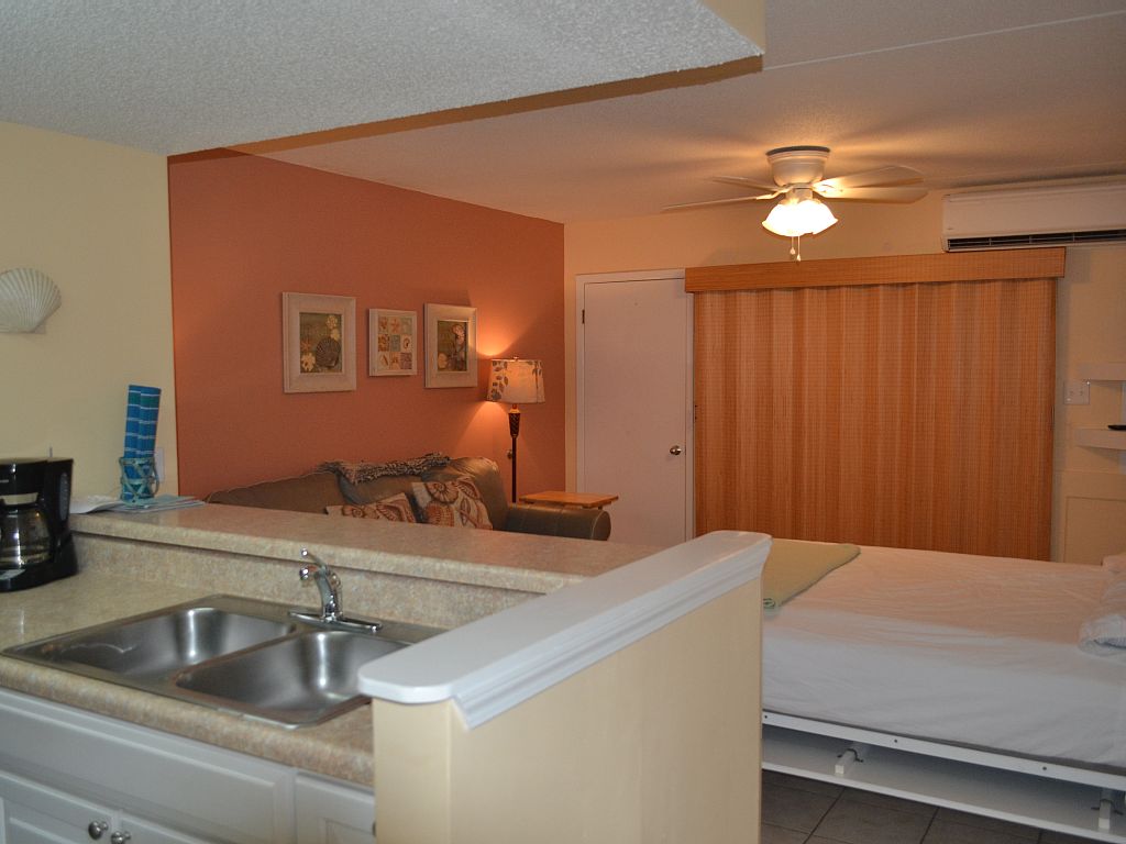 Parking is an additional $20. per stay (NOT PER DAY) that is payable at the gate IN GREEN CASH ONLY to the Security Guard on duty. PARKING IS NOT INCLUDED IN MY QUOTE. When I send a quote, it will include a one time clean housekeeping / cleanup fee of $85.00.Studio bedroom - queen Murphy (fold down) bed and couch (would sleep one teenager on couch) - (1) Roll A Way Bed for a smaller (less than 6' person) - 1 bathroom (total unit size 13' x 26') - located on 2nd floor of 3 story concrete building, gulf side of highway but not gulf front. The Gulf of Mexico and the beautiful beach are a barefoot walk away. Flat screen TV w/ remote -DVD player w/ remote - cable - free WiFi - sleeps (2) in queen size bed - ceiling fan - electric stove - refrigerator - freezer - stainless steel double sink - microwave oven - toaster - coffee maker - Plates, bowls, drinking glasses and silverware for FOUR people are provided. If you plan on preparing meals that require cooking, please bring whatever cookware you will need as I do not provide pots, pans, cooking utensils or other cookware for you to use - closet for hanging storage - chest of drawers - all tile floor - balcony w/ table and (2) chairs overlooking side view of gulf of Mexico with a sliding glass patio door - new air conditioner w/ heat - key less entry assisted close door - (3) bath sets, linens and kitchen towels provided - two (2) rolls of toilet paper provided - luggage carts located near elevators Please visit our Facebook page at 'barefoot fun at sugar beach' and upload your vacation pictures when you get back home.No telephone provided in roomAs per sugar beach condominium association rules, no pets are allowed by guests.Check in time is 4:00pm and check out time is 11:00am.Parking is an additional $20. per stay (NOT PER DAY) that is payable at the gate IN GREEN CASH ONLY to the Security Guard on duty. PARKING IS NOT INCLUDED IN MY QUOTE. When I send a quote, it will include a one time clean housekeeping / cleanup fee of $85.00.No weather cancellations or refunds.No early check in or extensions without prior approval from management.No surprises, just a quality room at a very competitive rateI'm sorry to have to put this on my page, but unfortunately, not everyone follows the rules:On day of check out, 11:00AM is the time all of your property / possessions are to be removed from the condominium. If for whatever reason your property / possessions are not completely removed from the condominium, they will be removed and stored at a location off premisis at the direction of management. A $100.00 fee payable in CASH will be charged for the redemption of your property / possessions at the convienence of the management or assignee of managememt. Management will not be responsible for any property / possessions that is missing, lost, stolen or otherwise not in the lot of property / possessions that are involved in the removal, transit or storage of said property / possessions. More details