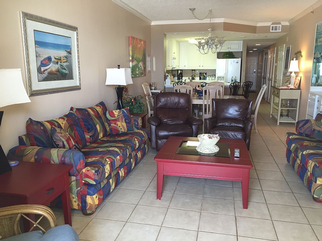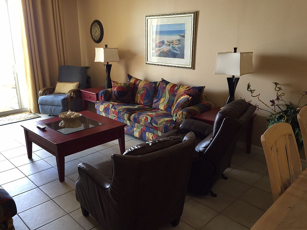 The Enclave in Orange Beach is one of the nicest lower density Condo complexes on the Alabama Gulf Coast with less than 70 units ensuring the beaches and pools won't be over crowded. Having an Excellent Family Oriented Reputation, it is situated right on the sugar white beach, with gorgeous views of the Gulf Ocean. Our 2nd floor home-away-from-home is new to the rental market in October 2013, and is beautifully decorated providing comfortable yet luxurious accommodations. Numerous great amenities include a beach side outdoor swimming pool with ample sunning area, lighted tennis court, heated indoor swimming pool with restrooms, 2 elevators, covered loading/drop-off lane with plenty of rolling luggage carts, and a barbeque grilling area (just bring your charcoal). Enjoy the excellent shopping values at the Walmart Market, and Winn Dixie shopping centers conveniently located directly across the street. Find additional shopping, including nail salon, liquor/wine/cigar stores, Dollar General, shipping store, and Dining to include Seafood, Chinese, Italian, & Mexican Restaurants. Our spacious unit was updated in September 2013. It is a spacious 3 bedroom 3 bath 1600 square foot unit located on the easily accessible second floor. The unit has tile floors throughout, with carpet in each of the bedrooms, crown molding, 9 foot ceilings, modern appliances, ceiling fans, DVD players, and all new flat panel televisions. MASTER SUITEThe Master Suite has a pillow top king sized bed, a 36' HDTV Flat Panel TV with VCR/DVD player. There is a sliding glass door to the balcony overlooking the beach with beautiful views. The drapery and blinds provide privacy, and will block out the sunlight if desired. The bathroom includes two sinks, a stand up shower, private toilet room, a large Jacuzzi bathtub, and walk-in closet.GUEST BEDROOMThe Guest Bedroom includes its own king sized bed, dresser, a 32 inch Sony flat panel television with DVD player, a large closet, and ceiling fan. The full-sized bathroom is accessible from the hall or bedroom, and has a stand up shower. GUEST SUITE AND BATHThe Guest Suite has two double beds along with a dresser, a 32 inch Sony flat screen television with VCR/DVD players. The large third full bathroom is adjacent with a walk-in closet, tub/shower combo.LIVING AREAThe living area has comfortable seating for 8 with a beautiful queen sleeper sofa along with a matching love seat, a pair of recliners, and 1 leather easy chair, an LG 51 inch Plasma HD Flat Screen, DVD/VCR Player, and HD Cable service. The blackout drapes help keep the early morning sunlight out if desired. The sliding glass door opens up to the balcony overlooking the beach with panoramic views of the ocean. The living area also includes a wet bar and ice-maker that makes gourmet wet-ice for your drinks.THE BALCONYThe large balcony is so close to the beach that you are practically sitting over the sand, and gives a spectacular 180 degree view of the beach and gulf. There is a table and seating for four to enjoy the views. You children will love the glass balcony that provides excellent visibility for them too.THE DINING AREAThe large dining area has chairs to seat six adults along with four bar stools for extra seating at the kitchen bar. THE KITCHENThe recently updated kitchen is well stocked with diner ware, utensils, glasses, cookware, knives, bowls, etc, to prepare most any meal. The normal kitchen appliances include a stove/oven, blender, toaster, 12 cup coffee brewer, can opener, fryer/steamer, microwave oven, dishwasher, waste disposal, and large side by side refrigerator with water & ice in the door.OTHER AMENITIESFor your convenience there is also a full size HD Washer and Dryer, iron, alarm clocks in all bedrooms, vacuum cleaner, and a broom/dustpan. We furnish starter quantities of bathroom tissues, paper towels, hand soap, trash bags, etc. Easy beach access is provided near the outdoor pool, you will be provided a code required for the security gate to enable your return to the property.The Enclave provides Free WiFi throughout the property as well as onsite Security. We will provide 2 parking passes during your stay. No motor homes, trailers, boats or RVs allowed in the Enclave parking lot. Extra vehicles of any kind (including RVs/Trailers/boats) can be parked across the street at the shopping center.Absolutely No smoking. No pets are allowed. More details