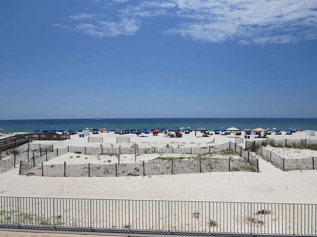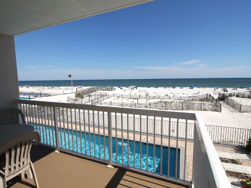 This 1050 square foot, second floor condo is RIGHT on the beach; there are no buildings separating the Caribbean from the beach. Our condo is located:-less than one mile away from the heart of Gulf Shores-less than one hour away from Mobile, Alabama-less than thirty minutes from Pensacola, FloridaEnjoy our 1050 square foot, 2 bedrooms, 2 full bathrooms, living room, kitchen, laundry room, and private balcony like we do! This is our second home and we want to share it with you! Watch the sun set right on the balcony! Enjoy watching television, playing on the computer with free Wi-Fi, and watching television on a flat screen with your family and friends in our living room! The massive balcony has an opening from the living room, with a perfect view of a sunset.Our master bedroom has a King-sized bed, a closet, two night-stands, and a dresser just like home. Our master bathroom is located off the master bedroom. The master bathroom has a walk-in shower with a separate Jacuzzi tub, along with two separate vanities. Our kitchen has a refrigerator, microwave, stove, dishwasher, garbage disposal, sink, and plenty of counter space to accommodate your needs! We have all the kitchen utensils so all you'll need is your food and your hungry family! We also have a dining table for six to sit and enjoy!Our guest bedroom is has a Queen-sized bed, a closet, night-stand, and a dresser too. The laundry room is located behind closet doors located near the kitchen of the condo so you won't have to remember the chore while you're relaxing in beautiful Gulf Shores! We have a Washer and Dryer so you don't have to go to a laundromat.Our condo is completed with tile floors in the bathrooms and kitchen, along with carpeted floors in the living room and bedrooms. More details