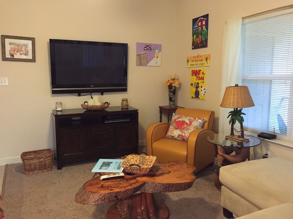 You'll love this condo the minute you walk in the door. When we purchased this condo it was for our family and friends to enjoy going to the beach and being together as a family. It has been newly painted, new carpeting and most furnishings are new. We wanted it to be a relaxed and refreshing beach atmosphere. There is a large master bedroom with a new king size bed with attached bathroom with double sinks, tub and a special shower head. The guest bedroom has two single beds which can be moved to accommodate children plus a blow up mattress, it also has it's own bathroom. This condo will sleep 6 people. In all rooms there are 46 to 50 In flat screen televisions on the walls plus DVD players in bedrooms and living room. Our kitchen has all pots and pans and dishes you mostly use in your own home. There is washer and dryer to wash clothes. Since this is our second home we have all necessities of home. I wanted it to be a special place to enjoy. We had so any inquiries to rent it we decided to let others enjoy our home away from home. Besides being comfortable and cozy inside the private balcony offers a quiet spot to relax after a day at the beach, pool or site seeing. Another great advantage that drew us to this complex was the proximity of it to everything. It's located off Hwy 59 just over the inter coastal waterway. Within walking distance there are several grocery stores, Wall Mart, Zaxby's, McDonalds and fine dining restaurants. Within a mile and a half there is the beach, Gulf State Park, Waterville, bike trails, zoo, miniature golf and many more things to do. If you like to shop there is ample shopping with the Wharf in Orange Beach, Tanger Outlet Mall and many more shops. We now have wifi More details