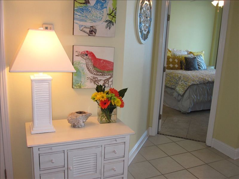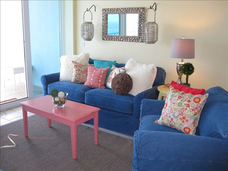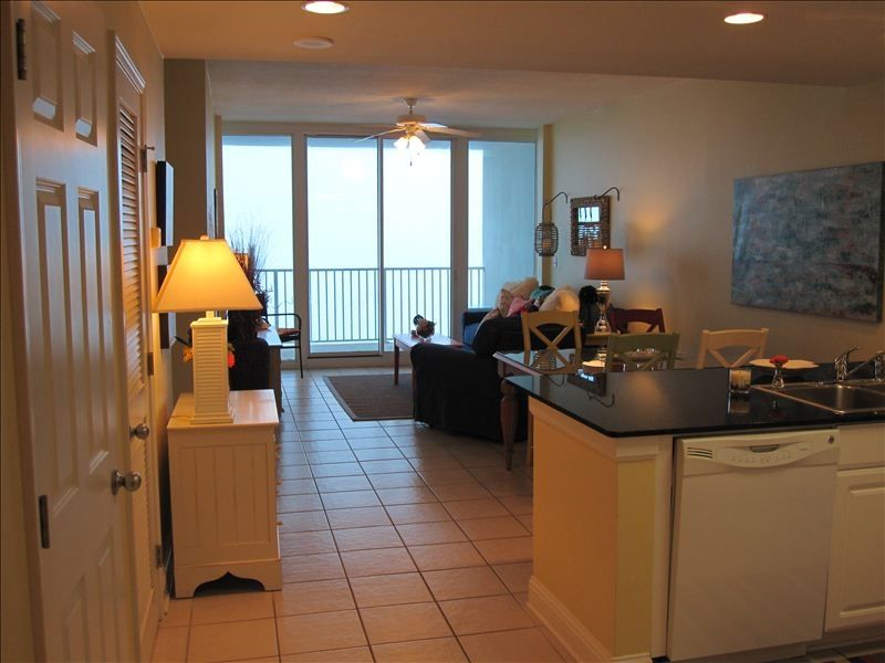 You Finally Made it! Welcome to our Condo, 'In Between Dreams', located at Gulf Shores Newest Condominiums, The Lighthouse. Come and enjoy all the relaxtion our 2 bedroom/2 bathroom + sleeping nook has to offer. We are located on the 8th floor with unobstructed Beach Front Gulf Of Mexico Views. The white sand beaches are unlike any other, and that's the only thing between you and the ocean.The Lighthouse is located on East Beach Blvd, .7 miles from Highway 59 intersection, directly in the heart of Gulf Shores, Alabama. Within 5 miles you have shopping, restaruants, theater, Golfing, Fishing, Waterpark etc... I will be glad to recommend restaurants and shopping areas. Within The Lighthouse Property you have 2 Large Outdoor Pools (one lap and one zero entry), indoor pool, two hot tubs and a Beach Front workout room.Walking into our custom painted condo, you will find the sleeping nook directly to the right. This room is very private and has a twin bed. The large walk in laundry room is next and has a full size washer/dryer. The size of this room allows for added storage during your vacation. Next you will find the queen bedroom on your left with an attached bath. The Queen Bedroom has an armoire with TV/VCR combo and ample storage for clothing. Walking up the hallway you will come to the fully stocked kitchen on your right. The basics: dishwasher, microwave, stove, refrigerator/freezer, toaster, blender, coffee maker, mixer and disposal. All utensils and kitchenware are furnished. The bar has two stools and is next to the telephone which has free state wide service along with WiFi Internet. The kitchen opens up to the dining room and living Area.In the living area, you will find a over-sized sofa, armoire with 37' Flat Panel LCD TV/DVD/CD player. There is a twin air mattress under the TV available to use as well. The views are amazing with glass windows floor to ceiling and sliding doors opening up to the large balcony. We will sit out and see dolphins and sting rays swimming in the surf. It is truly heavenly!The master bedroom is Gulf Front with floor to ceiling glass windows and sliding door leading to the balcony. The dark wood King Size Pottery Barn Bed has floral linens that give a tasteful Island feel. The matching cabinet has a 32' Flat Panel LCD with DVD player, 98 channels plus 5 HD channels. The private master bath has his and her sinks along with a large walk in closet. There is a whirlpool tub and a seperate glass door shower.Recent guest comment:'Thanks Jason, We really enjoyed staying at your beautiful condo on Sept. 29-Oct.3,2009. We loved the decor. It's even much prettier in real life than the pics on the website. The convenience, the view and everything about the condo made our stay most enjoyable! We hope to return someday for another relaxing vacation in Gulf Shores.'-Roger & KathyI hope we have given you an adequate feel of our home away from home. Please feel free to ask any questions(references available) and we hope you will come and enjoy 'In Between Dreams' on your next getaway. ***Check out my other unit on West Beach at Crystal Shores Condominium, new in 2004, corner unit, 8th floor, very nice too!! vrbo listing #41023. Also, vrbo Listing #102830, ground floor 2bed/2bath, great value at Island Shores. Keywords: Beach Front Condominium More details