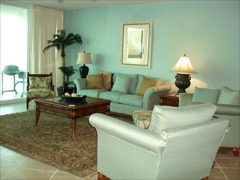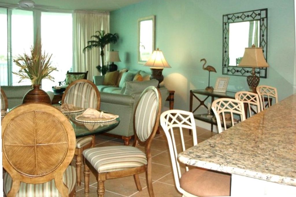 The Caribe resort will be like a waterpark wonderland for the kids and a luxury resort for the adults!!! You can rent this professionally decorated unit for 25% off the price you would pay directly from Caribe. This is a special we are offering because we know once you stay in this beautiful unit you will want to return time and again. The Caribe resort is truly a resort like no other with first class amenities and our unit continues the luxury features and upscale décor of the resort. Our 10th floor unit was specifically selected for the awesome views. It has breathtaking direct views of Perdido Bay, Ono Island and down Old River. Schools of dauphin frolic outside the balcony! The sunsets light up the sky!! Boating and fishing await you at your doorstep. Golf is minutes away and a professional putting green is on site! The kids will love the water slides and lazy river. Everyone will love the easy access to the Alabama State Park Beach with new board walks, restrooms and pavilions. The interior of the spacious 1800 foot condo features a state of the art kitchen with Kitchen Aid stainless steel appliances, granite countertops, separate bar with wine cooler and ice maker. No detail was overlooked in designing and decorating this condo. Large 20 X 20 tile is through the condo and balcony. The greatroom is painted a soothing green with beautifully appointed furnishings and drapes. The Tommy Bahama rug is a beautiful accent. Original artwork is displayed throughout the condo, mostly by local and coastal artists. The queen sleeper sofa provides additional sleeping. The green color scheme continues in the master bedroom with accents of chocolate brown and a four poster bamboo king bed. A desk provides the perfect spot for your lap top and wireless high speed internet is provided. The masterbath features a large vanity and double sink,large jetted tub, luxury shower with wall jets. Each of the other bedrooms has a private bath and is uniquely decorated. One bedroom has a queen bed with Tommy Bahama furnishings and the other has two twin beds. All the bedrooms and the greatroom have plasma TVs and are carpeted. The great room has a 42 inch plasma with DVD player. The twin bedroom also has an Xbox with games. The 300 square foot balcony is well furnished with balcony height tables and chairs to fully enjoy the views. The balcony also has another comfortable sitting area to enjoy a beverage, watch the sunset or grill that fresh catch on the electric grill. Don't hesitate to book this unit in the C building 10th floor! This is the newest of the three buildings and right in the middle with easy access to all buildings and amenities throughout the resort.Keywords: Condominium More details