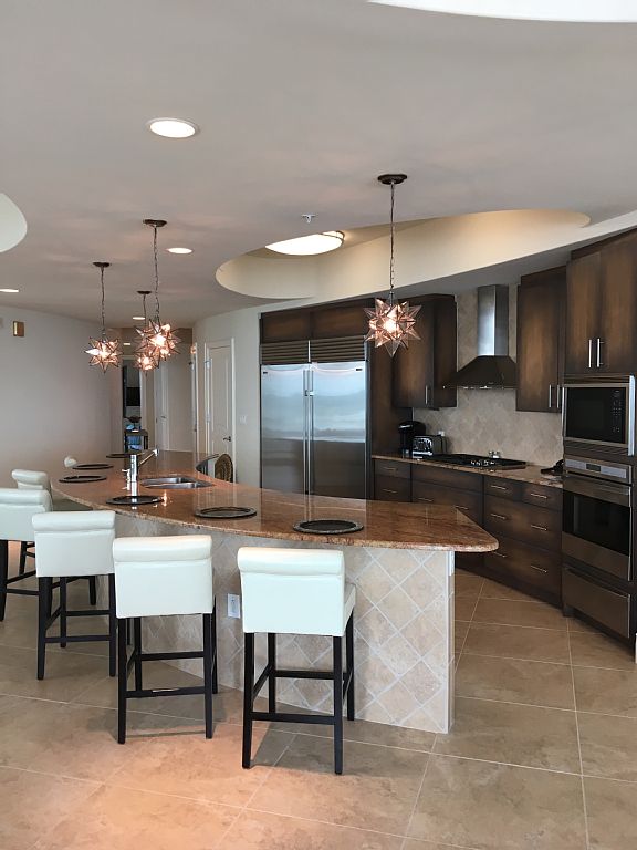 Spectacular oceanfront 4 bedroom vacation condo.New and fabulous!! Professionally decorated 4 bedroom 4&1/2 bath beachfront condo in turquoise place with all amenities including custom lighting! Massive open kitchen with granite bar and top of the line appliances including wine cooler and ice maker. Unlimited dining space. Den with comfy seating and gas fireplace. Roomy master bedroom has luxurious king bed with exceptional linens. Master bath with large walk in shower, great jacuzzi and flat screen TV! Unbelievable closet space throughout with laundry room ,washer/dryer to die for! 2nd and 3rd guest rooms with king beds have flat screens and astounding views of surroundings including beaches/bay with private bathrooms. 4th bedroom has 2 full beds with flatscreen and private bath. End unit outdoor balcony wraps around the condo so the view speaks for itself! Also has outdoor balcony gas grill with sink and private hottub! Perfect vacation rental for large families and friends. More details