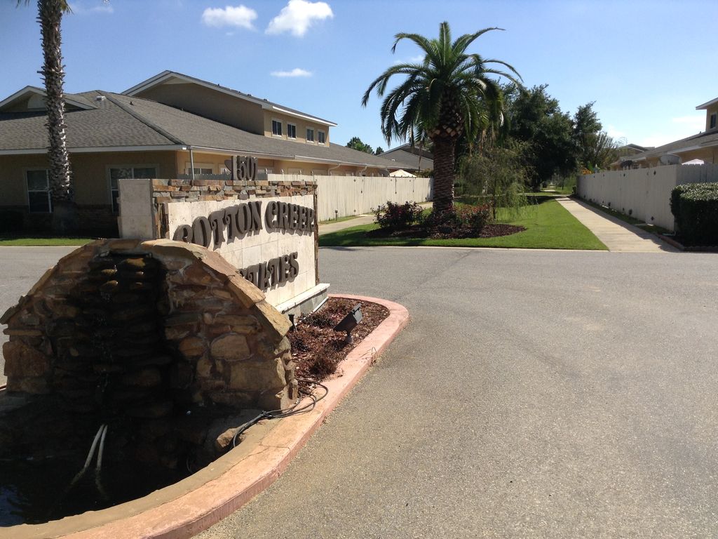 Cotton Creek Estates is a quiet small community of homeowners strategically located on County Rd 4 between HWY 59 and the Orange Beach Express. Also, about five minutes from the white sandy beaches of the Gulf of Mexico in one of the most popular neighborhoods in Gulf Shores. The condos are nestled around a beautiful oval shaped pool with a hot tub, workout room, sauna, and bathroom. The perimeter of the units serves as a walking area for pets that is approximately one mile around. Additionally, there is an inner sidewalk circling around the inside of the property that is well lit in the evening.Unit #506 is a two bedroom two bath with a living area/dining combination and a sleeper sofa. The unit includes; a dishwasher, microwave, washer, dryer, DVD player, cable, 2 50" flat screen TV's, (one in living area / 1 in guest bedroom), and garage. The master bedroom has a king size bed and the second bedroom has a double bed. Both front and back patios are enclosed with a privacy fence. • Cotton Creek Estates rental properties are designated 'Dog Friendly.'• 2 dogs limit are allowed on property.• Certain weight restrictions apply (90lbs or less).• Laws in Gulf Shores, Orange Beach and Perdido Key prohibit pets on the beach.• Pets are allowed on the beach in the Fort Morgan peninsula area.• Dogs should be on a leash at all times when outside the rental unit. More details