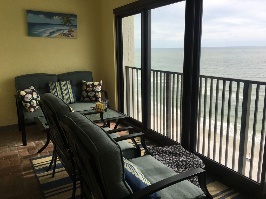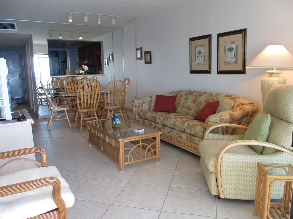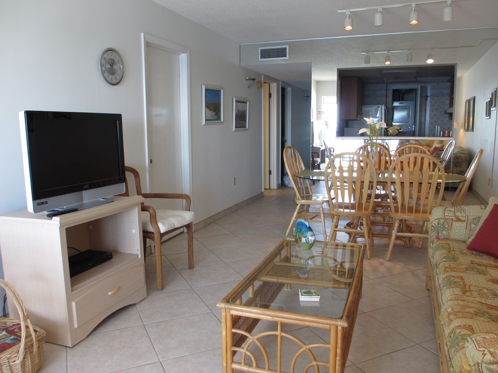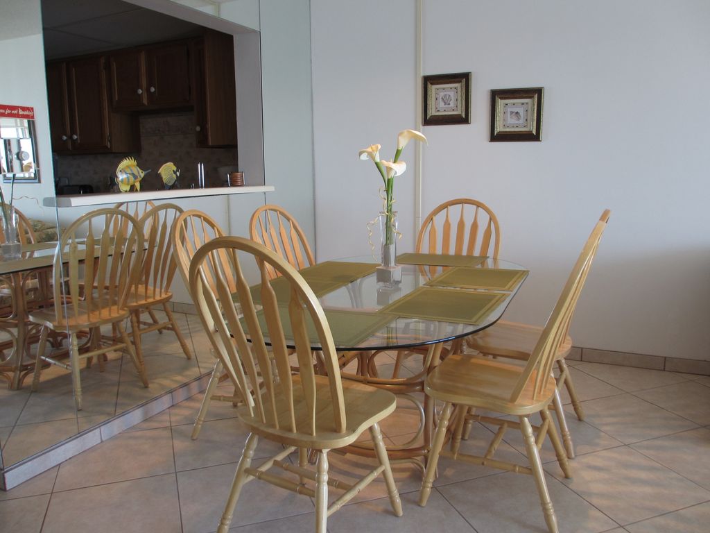 Welcome to our Gulf Shores home! We invite you to enjoy the beach and our seasonally heated outdoor pool without the crowds of higher density complexes. Our two bedroom condo is a bright, airy, and spacious unit with wonderful views of the beach and ocean. The unit is well furnished with a king size bed in the master bedroom, twin beds in the guest room, and a sofa sleeper which sleeps two. The bedrooms and living room have flat screen televisions and DVD players. The dining area comfortably seats up to 6 people. The full kitchen is equipped just like home with plenty of pots, pans, and dishes for dining-in. There is a washer & dryer in the unit and free Wi-Fi available to guests.
