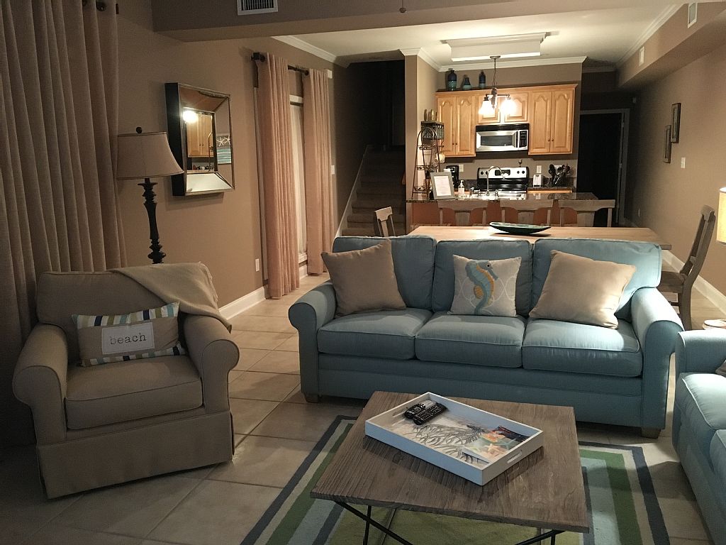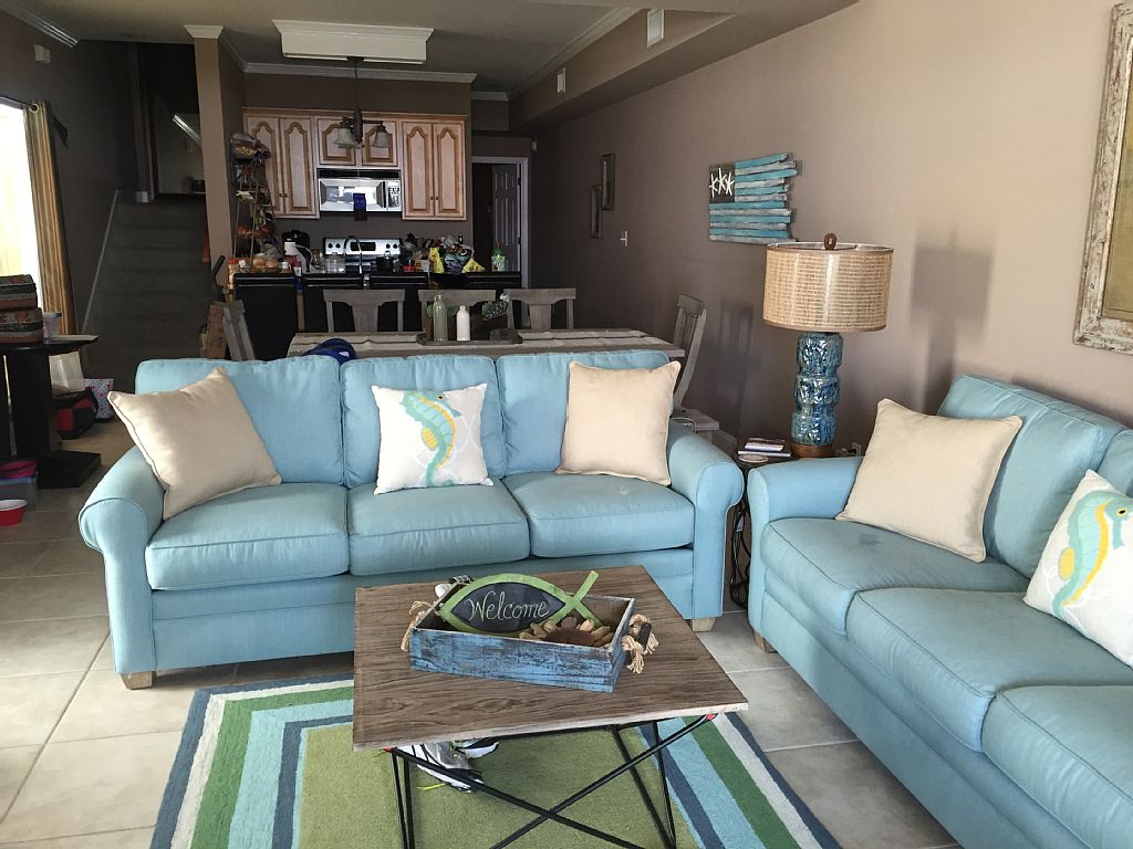Amazing 3 bedroom/3 bathroom duplex located directly across from the beach with beautiful inground pool. Downstairs has one bedroom with 2 queen beds, one bath, living, dining and kitchen. Upstairs has 2 bedrooms (one with 2 queen beds & bunk beds (twin over twin)& the master with king bed), 2 baths and laundry area. TVs are in all bedrooms as well as living room. This top of the line unit sleeps 14 (using sleeper sofa) & has a nice large outdoor living area with gas grill.