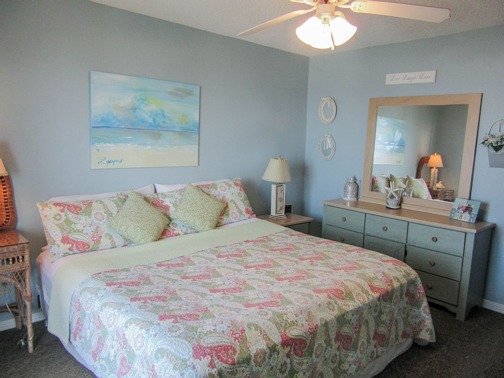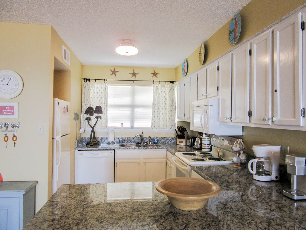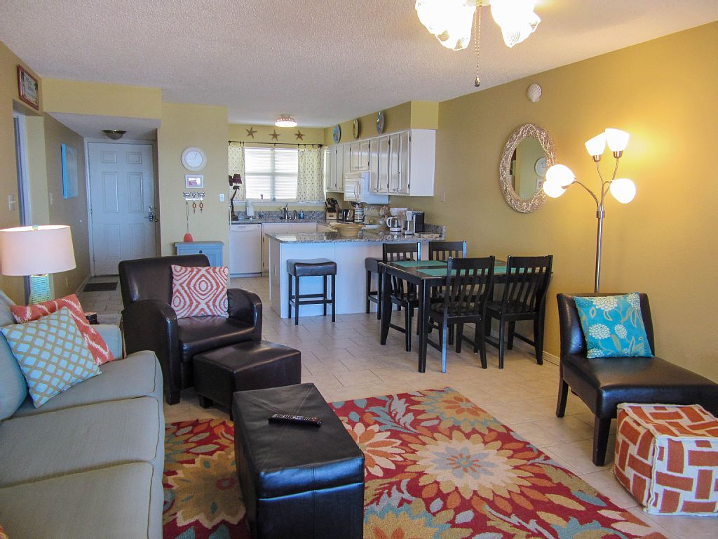 Small, family friendly complex with grassy play area, gazebo with barbeque area, and beautiful white sandy beach. Large balcony overlooking the gulf and gorgeous sunrises is available for your enjoyment. No long waits for the elevator. Beach area in front is wide, and the complex is small so there are usually no big crowds at the beach.This condo was recently updated with new slab granite in the kitchen and baths, new sinks and faucets in kitchen and baths. New sleeper sofa and chair in living room. We also added flat screen smart TVs in the living room and bedrooms.. The condo is walking distance to Adventure Island, shopping, and restaurants. Unit is well equipped with 3 televisions, , and one DVD, games, and movies, as well as loads of pots and cooking utensils. Living room, kitchen, and master bedroom have a view of the gulf.The master bedroom is a nice size and has room for a pack and play, or pallets for children. It has a king sized bed. The second bedroom has a queen sized bed. There are 2 full baths with shower/tub combo. There is also a stacked washer/dryer for your convenience Owner is a licensed real estate Agent in LouisianaKeywords: Condominium More details