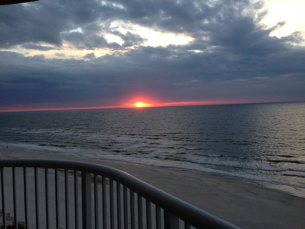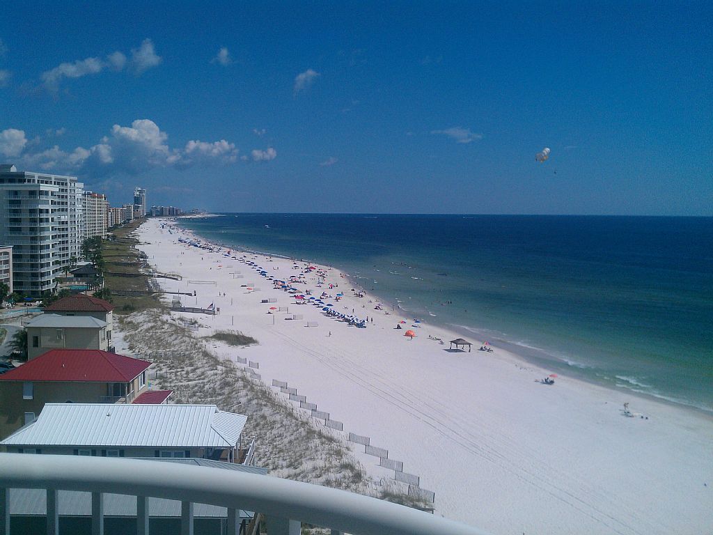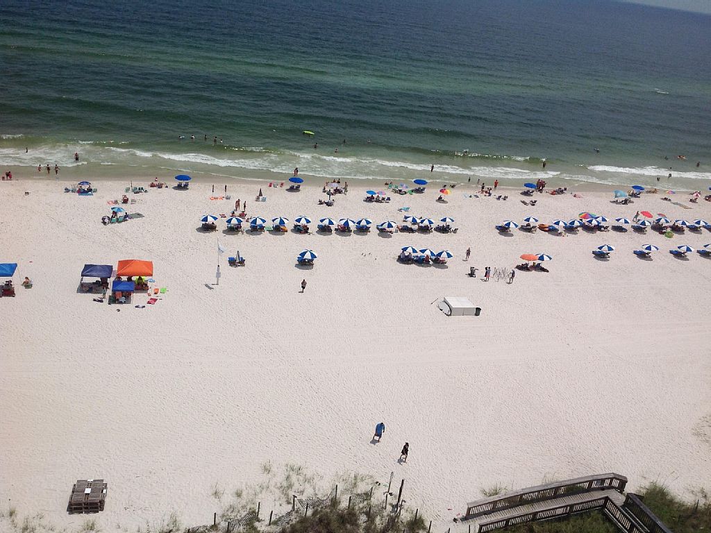 Tradewinds condominium Unit 1001 has expansive views of the beach from Alabama Point to Gulf State Pier. It is a beach-facing front corner unit with GORGEOUS VIEWS from EVERY room. The Master Bedroom is outfitted with a King bed. The second bedroom has a Queen bed. There are 2 child-size bunk beds (5'5') built into the hallway, and the living room features a Queen Sleeper sofa. There is a flat screen TV with DVD player in the living room and a flat screen TV in the master bedroom. This condo features a covered balcony with plenty of comfortable furniture to enjoy the beautiful sunsets, dolphins jumping and boundless beach activity. There is a fully stocked kitchen with stove, refrigerator, microwave oven and dishwasher and a washer/dryer located within the unit. There are built-in bins by the indoor/outdoor heated pool to store your things while walking on our pristine beaches. There is a barbeque/picnic area with lovely manicured lawns and 24 hour security on premises.
