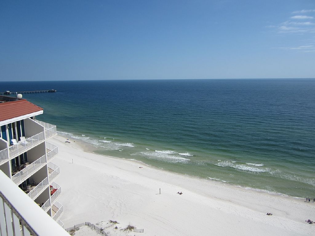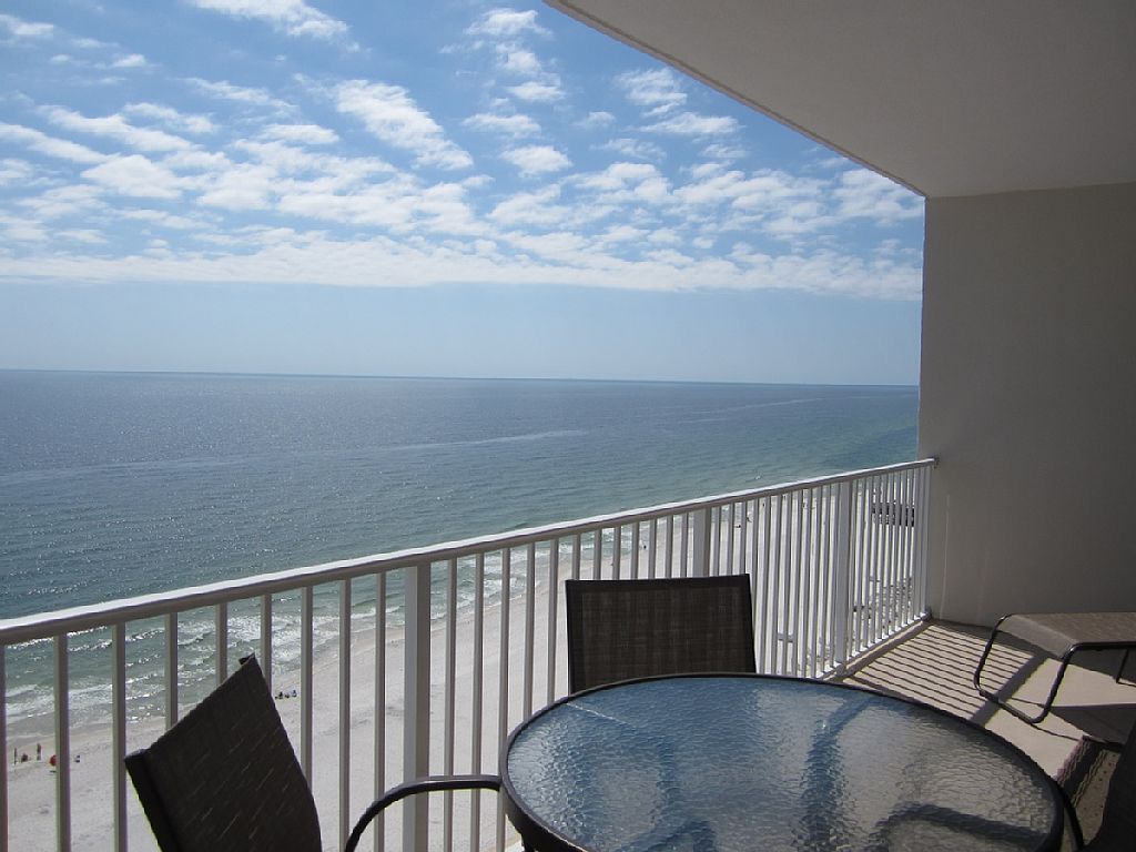 Newly renovated in February of 2014, this gorgeous 2 bedroom/2 bath + Bunkroom on the 16th floor of the Lighthouse Condominium is the perfect setting for a memorable vacation. The expansive balcony and floor to ceiling glass sliders provide a window to Alabama's Gulf Coast and the blue green waters of the Gulf of Mexico. Features new ceramic tile floors, paint, light fixtures, updated kitchen with new stainless appliances and granite counters. Our renovation also includes all new furniture, electronics, bedding, décor, housewares and a comfortable and colorful coastal design. The functional and flexible floor plan allows for many options for you and your guests. 1606 sleeps 8, featuring a luxury King Master Suite facing the Gulf with access to the balcony via floor to ceiling slider. The master bath features a split plan with separate soaker tub and shower, vanity and walk in closet. The Queen Suite off the foyer features queen bed with access to the hall bath. This allows for a second private suite for smaller groups. The bunk room features twin bunks and is a great place for the kids to have their privacy. The living area is open concept with a wall of glass facing the Gulf. Access to the balcony. There is plenty of seating for everyone with new leather sofa sleeper and chairs, dining table that seats 6 and 4 bar stools at the bar. This is a breakfast bar in the morning, a snack bar at lunch, and the perfect bar for wine in the evening while hanging out! The kitchen is fully equipped with new stainless appliances, refrigerator with ice maker, smooth top stove, built in microwave and dishwasher. The kitchen if stocked with all the housewares you need for cooking and entertaining. Each bedroom has its own flat screen TV with DVD player, the living room features a 55', 1080 DP, 60 HZ LED flat screen TV and DVD as well. This allows for everyone to watch TV or a movie together or provides options for everyone to do their own thing. We also provide free WiFi. Out on the balcony, you have all new furnishings with table and chairs for eating out, extra seating and loungers for soaking up the Gulf Coast sun. Lighthouse Condominium has great amenities to make your vacation more fun and relaxing. There is an indoor/outdoor pool complex, workout room, sauna, game room, and convenient parking garage. The building is right on the sand, just a few steps and you're on the beach! The location near the center of town makes it convenient to walk to all the famous festivals and concerts through out the year at the main public beach and The Hangout. More details