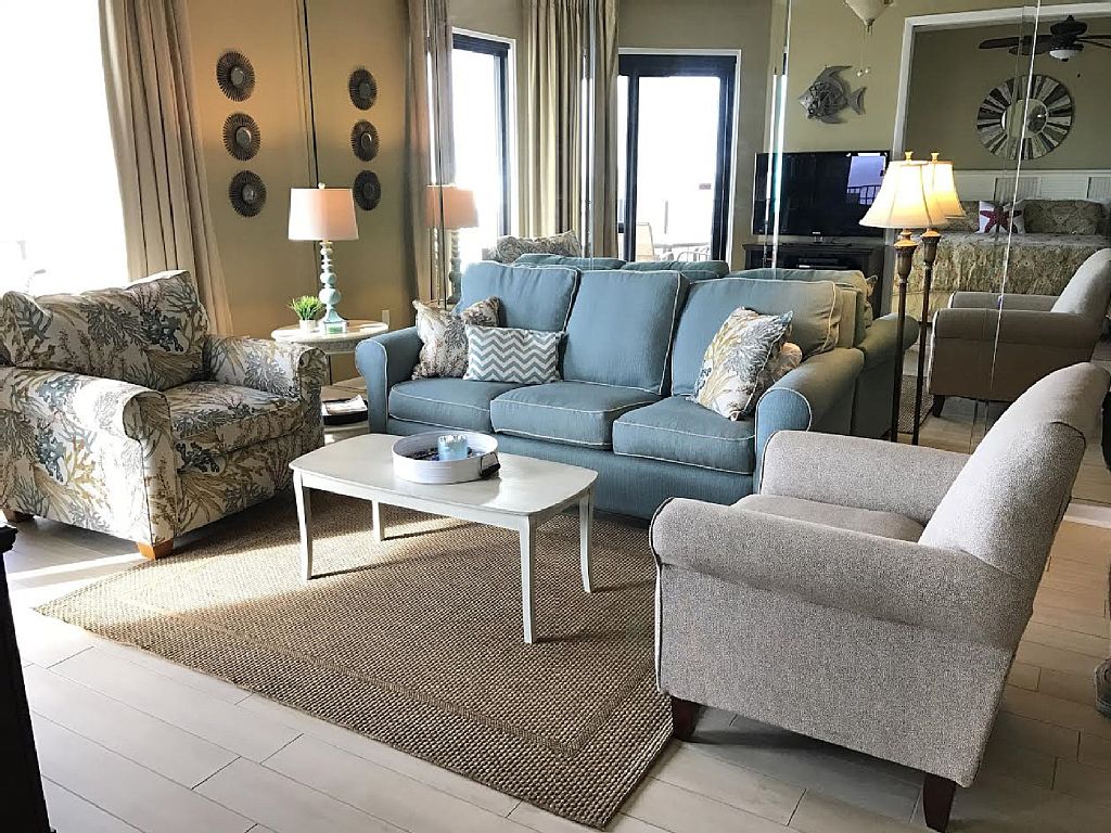 Create lasting memories in our beautifully decorated 2BR/2BA Beachfront Condo. It has everything you'll need for a pleasurable and enjoyable vacation. You'll love the beautiful views from both the living room and master bedroom! Both rooms have sliding glass door entrances to your gulf front balcony, equipped with a lounge chair and patio table with chairs. You'll enjoy sipping your morning coffee or having a glass of wine at sunset on the balcony while taking in the beautiful views of the Gulf of Mexico. Do you plan to watch the big game or your favorite movies while on vacation? If so, we recently added a brand new 42' flat screen television in the living room for your viewing pleasure! If you plan to cook while you're visiting, the kitchen is stocked with everything you'll need. And, as an added feature, we have a beverage fridge and wet bar for your use! If you don't plan to cook, there are numerous local restaurants serving delicious fresh seafood from the gulf! A king size bed and a flat screen television await you in the master bedroom! There are two full size beds in the 2nd bedroom and a television for your enjoyment (linens are provided). A washer and dryer are also in the condo for your use. Amenities of the Phoenix VI are second to none. They include a fabulous outdoor pool, a heated indoor pool, kiddie pool, lighted tennis courts, a racquetball court, fitness center, hot tubs, sauna, beachside gazebo and a poolside BBQ/grilling area. A private, underground parking spot is also available for you to use during your stay! While you're here, you can relax and enjoy the sugar white sandy beaches, play golf on one of the 24 courses in the immediate area, charter a deep sea fishing trip, enjoy a sunset dolphin cruise, go parasailing, or spend the day shopping at the nearby Tanger Outlet Mall! There's plenty of things to do in Orange Beach and the surrounding areas! So...what are you waiting for? Make your reservations today!!! Please visit VRBO No. 348523 for our other listing in Gulf Shores if this unit is booked or you would like another quote.Keywords: Condominium More details