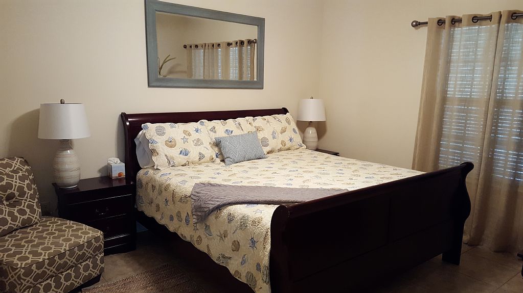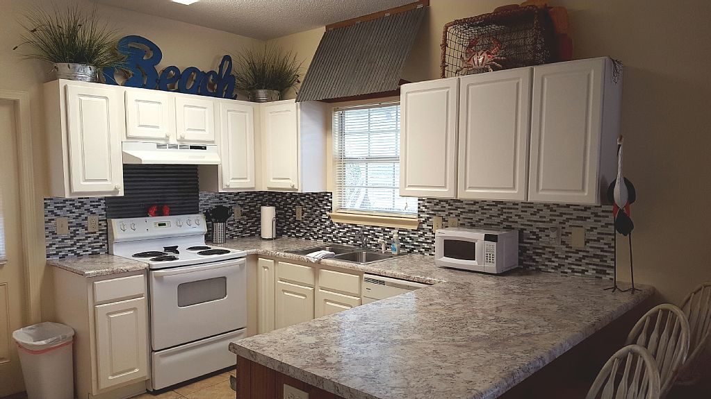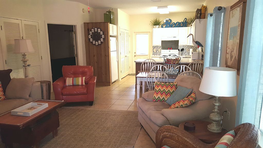 This cottage is part of the Orange Beach Villas-Twin Lakes complex, a beautifully landscaped Key-West inspired village located off Canal Road in Orange Beach. It is a wonderful location with many amenities...(stocked fishing pond, gazebo, swimming pool, clubhouse, and parking spots right outside your front door). With this being the first unit, your 2 parking spaces are protected for the those unique cars.The Wharf complex is just a mile away, with multiple restaurants, a movie theater, a 5 story high Ferris wheel, upscale shopping, marina, and amphitheater for your entertainment and shopping.Sports enthusiast are just a quick half mile to the Orange Beach Sports Complex (and not far from the Gulf Shores Sports Complex and Foley Sports complex, that's under development). The Orange Beach Golf Center is a half mile down the road. The Gulf State Park has a Zip Line and miles of fabulous hiking and biking trails, and it is just four miles away. Cotton Bayou Public Beach is just under 4 miles away, with free parking and a bath house. This unit has beach chairs and water toys available for you to use! The pond here is stocked, and for the big fisherman Orange Beach Marina is just a few miles away. They also have Dolphin Cruises that' would be fun for the whole family.This unit provides comfortable sleeping for 7 or 8, with updated beach themed furnishings, tile flooring, and a well-equipped kitchen. I offer cable TV with TIVO , and high speed Wi-Fi to provide you with all the comforts of home. The Living Room is a great open space, with a large Flat-Screen TV and DVD player, comfy couch and oversize chairs, and is open to the dining and kitchen area. The Master Bedroom has a King Sized Bed with Flat-Screen TV, and serene decor. Guest Bedroom #1 is equipped with a queen bed, a TV, and DVD player. Guest Bedroom #2 has a double bunk bed, full-size on the bottom, and twin bed on top. It also has a TV.The open and airy kitchen and living room provide much space for gathering and relaxing. You can enjoy grilling out on the gas grill, while relaxing on the covered patio or private side yard. Currently it is pet-friendly, with a limit of one Non-aggressive house trained dog under 20 pounds. Current shot records must be providedI live locally and manage this home myself rather than using a rental company; so you can be assured of getting individual and timely attention to help make your stay here a very enjoyable one. More details