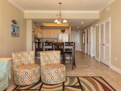 This very beautiful and newly decorated unit has the most amazing views, located on the 12th floor (actually the 16th floor since there are four levels of parking), affords breathtaking views in all directions. The Crystal Shores West Complex was built new in 2006, and is located in the heart of Gulf Shores, one mile west of the Hangout. The complex features a Large Heated Indoor/Outdoor Zero Gravity Entry Pool along with a large hot tub. The ground level also has a boardwalk that leads directly to the beach along with a grilling area. Adjacent to the pool area you will find an exercise room, including sauna, and game room that overlooks the sugary white sands and the gulf. Nine-foot ceilings enhance the ocean views from the living/dining area as well as from the master bedroom. These rooms also open onto an oversized private Gulf-front terrace.The fully equipped kitchen features custom cabinets which are accented with granite countertops. There is an eating bar with 4 bar stools, along with all appliances and staples needed for those days when you would prefer to stay at home rather than explore and enjoy the countless fine restaurants in the area. The dining area has a large table that comfortably seats eight. The Gulf Front Master Bedroom is furnished with king size bedding with a new mattress/box springs set. The master also has a Flat Screen TV/DVD, closet, private bath/shower and private access to the balcony.The second bedroom is furnished with two twin beds with high quality mattress, closet and access to second bath/shower. Can't you just hear the waves crashing on the shore, feel the breeze, smell the ocean and taste the fresh shrimp? Make Crystal Shores West a new favorite of yours!Save 20% on your 3 night (minimum) stay this spring, beginning April 5, 2016 - May 15, 2016. This offer is not valid during The Hangout Music Festival (May 19, 2016 - May 22, 2016). Mention this offer to receive your savings. More details
