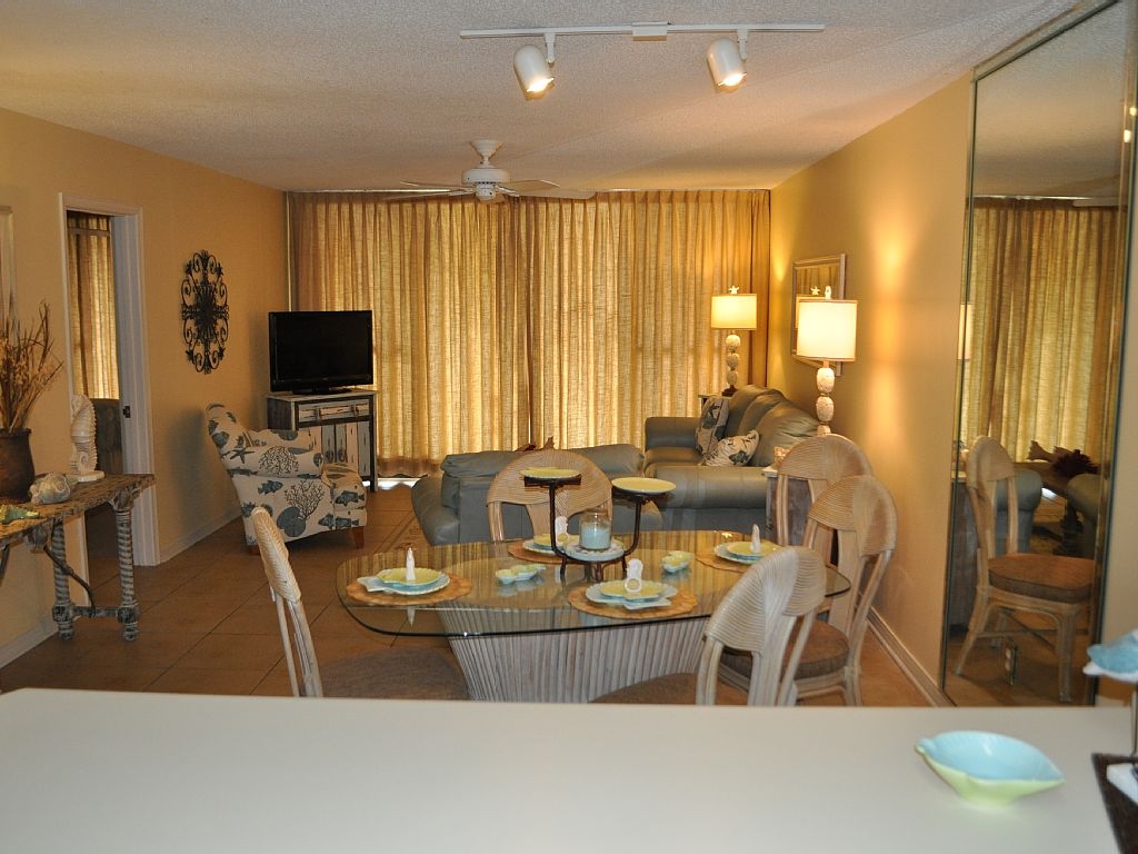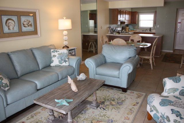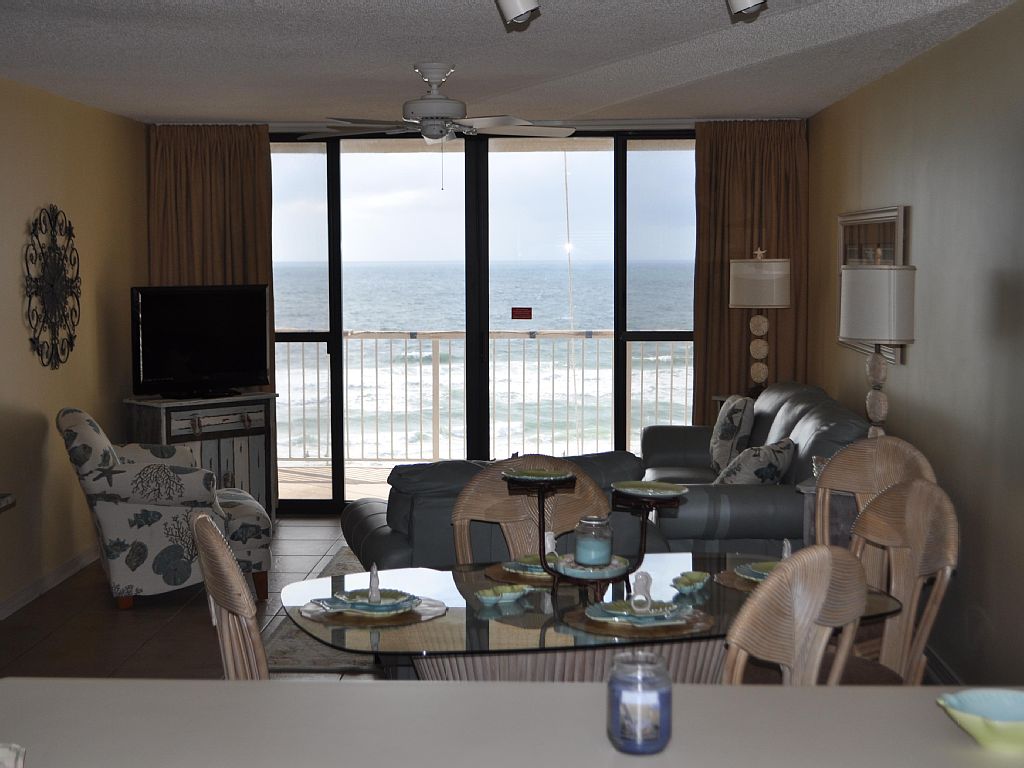 We recently purchased this condo because of the breathtaking views of the gulf and the tropical grounds that can be seen from both the living room and master bedroom. Our place has everything you would want in a vacation condo. When you enter, you will be amazed by the incredible view of the ever changing colors of the Gulf of Mexico. Just beneath our balcony is a saltwater swimming pool which is nestled up to the snow white sand dunes of the beach.You will be completely comfortable in our seventh floor two bedroom condo. We have two full bathrooms, a fully functioning kitchen, a full size dining room table, and a balcony running from the master bedroom to the living room facing the Gulf of Mexico. There is tile in the kitchen, entry way, and in both of the bathrooms. For your comfort, both of the bedrooms are carpeted. The spacious master bedroom has a king sized bed and the room faces the Gulf of Mexico. The other bedroom hosts a queen bed. The beds will make you never want to get out of them. You may want to eat your dinner on the balcony or have your first cup of coffee in the mornings here. The kitchen is fully stocked with pots, pans, dishes, glasses, coffee pot, blender, electric can opener, etc. and all the utensils that you might need to make your own culinary delights. The dining table can accommodate six guests and we also have two bar stools. For your convenience, we have a washer and dryer so that you won't have to take those dirty clothes home. We provide a vacuum, ironing board and iron and all of the linens for your stay with us. We have a high speed Internet connection that is free, so bring your laptop. Our condo offers all the amenities and comforts of home. The picture perfect views from the deck are absolutely spectacular. It has been said that Orange Beach has the whitest sand and the prettiest water. You may want to spend hours marveling at the ever changing colors of the water from the privacy of your own condo or from the sun drenched white sandy beach. The photos will only give you a small hint of the beauty that will touch your soul. In the short time we have owned the condo, we have seen dolphins swimming in the morning and in the afternoon from our living room.You’ll feel at home in our condo even though you are hundreds of miles away from your own. We want you to feel like our condo is like walking into your second home each evening, which makes for a cozy warm feeling all stay long. This condo is perfect for a honeymoon or vacation with your family, kids, and friends. We want to make sure that your stay with us will be made of memories that will last a lifetime for your family and friends. Lean back in a comfortable chair on the beach or at the pools and enjoy the warmth of the sun. Relax and unwind as the calm and peace of each moment renews your spirit. Day or night Seaside’s pools are a wonderful place for washing away your cares. Whether surrounded by the lush tropical plants by day or by the romantic moon that dances on the water at night, the pools are a favorite of guests. Our complex is very family oriented; yet a honeymooning couple can also enjoy the peace of our complex. There are BBQ grills located throughout the complex for guests to have that perfect steak at night. There are picnic tables to compliment these grills. The shuffle board court is available by getting the equipment from the onsite office. There are also lighted tennis courts, a state of the art work-out facility with flat screen televisions, indoor heated pool, steam room, a sauna, and lockers and showers in our indoor restroom area.The complex also hosts weddings on the beach and many couples use the clubhouse for their receptions. Also, a number of family re-unions and meetings are held at the complex as they can rent the clubhouse. It has a full kitchen, fire place, couches, and tables that are all set up for your enjoyment. Does fishing or golf interest you? The Alabama state park has the longest pier in the southeast and it is open 24 hours a day. It has a tackle shop and at the end of the pier you can even clean your fish before you leave. The best place to buy your fishing license is at Walmart where you can even purchase your bait. There are numerous benches in the area for you to sit while fishing. The Orange Beach area has hundreds of charter captains and fishing boats. The fishing is absolutely superb. There are ten great golf courses in the area. Shopping opportunities are outstanding with some shops only a few blocks away and a huge outlet mall with 150 stores about twenty minutes away. If you like to shop, there are hundreds of boutiques, souvenirs shops, grocery stores, and specialty shops near the condo. The new Wharf complex has a great Ferris wheel for the kids, a large movie theater, shopping, dining, and outdoor concerts where famous singers come to perform. Many company meetings are held here because of the golf, fishing, and other entertainment opportunities. Orange Beach has added six new zip lines in its Zip Line Park. They have also sunk a ship off the coast, so that scuba diving can get better each year. Don't forget about Waterville Water Park. It has so many new rides that you can't do it all in just one day.We welcome you to your extraordinary Orange Beach vacation. Now all you have to do is book our condo before your dates are gone! More details