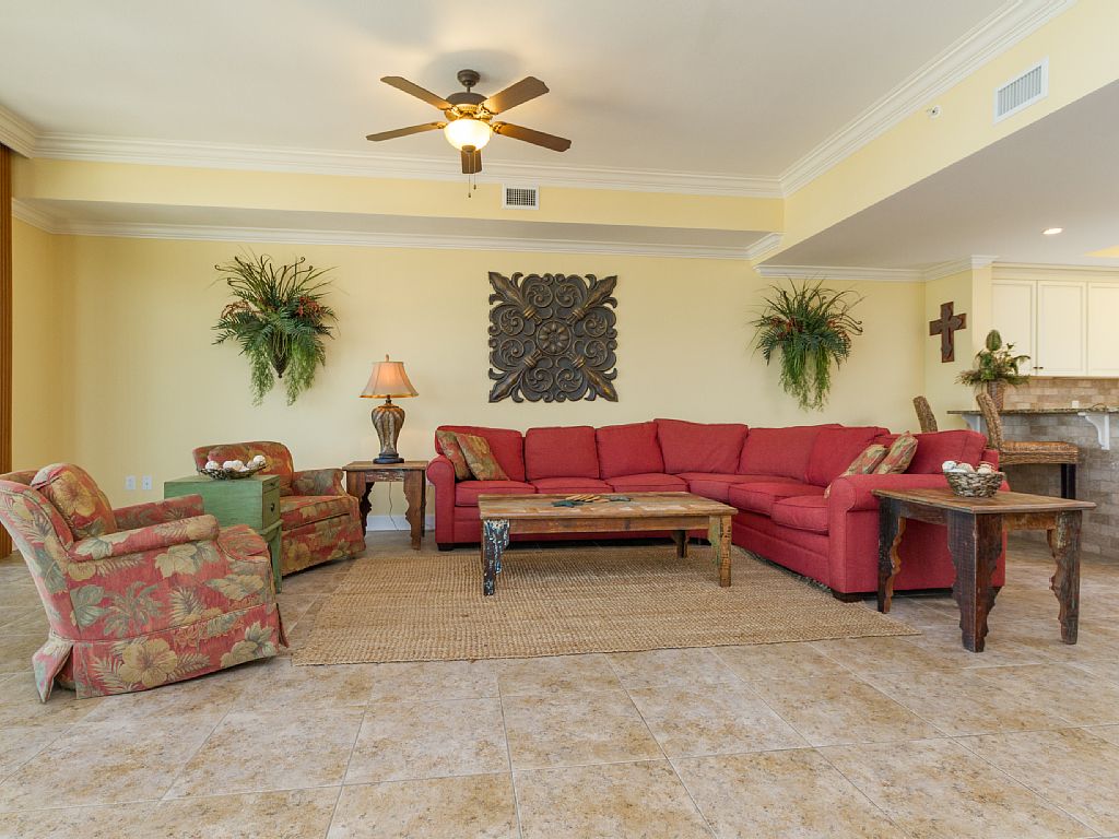 Beautiful upgraded unit in this amazing new building (Opened 2014) directly on Orange Beach with a long lazy river!Book directly with the owner on this site. Skip the check in lines and enter with your code. Upgraded ceiling-height, vanilla cream raised panel cabinetry and 18' tile throughout complement the upscale furnishings and tropical decor in this unit. With over 1950 square feet, this unit sleeps 8 adults in bedrooms (2 KING bedrooms and an additional bedroom with 2 QUEEN beds). All 3 bedrooms have private baths. A fourth bathroom is centrally located off of the hallway. There is also a sectional sofa sleeper to accommodate 2 children. Each bedroom has 32 or 40 inch flat screen Smart TV's that connect to the free Wi-Fi. The living room has a large flat screen Smart TV and DVD player. The kitchen and wet bar with granite countertops are stocked with all you will need, and there is an ice maker at the wet bar. There is also a full size washer and dryer. This unit is located at the northwest corner of the building. You will have a view of the beach from the balcony as well as several other bodies of water (see our reviews regarding the beautiful balcony views). At nighttime on the balcony, view the local area and the seasonal fireworks displays just down the beach at the Gulf State Park Pier. Step outside your door to a huge lobby right on this floor with ceiling to floor windows and a spectacular view.BUILDING AMENITIES: With a beach side lazy river along with slide, heated indoor pool, outdoor pool, kid's splash pad, steam room, outdoor charcoal grilling area, several hot tubs, and enclosed parking, this condominium has it all. This property also has over 500 feet of private beach, tennis courts, and a state of the art, two-story fitness center. LOCAL ATTRACTIONS: Scenic Zip Lining and kayak rentals are just 2 miles away at the Gulf Adventure Center. The bacon wrapped shrimp are a must at Wintzel's Oyster House less than 1 mile down Beach Boulevard. Adventure Island for mini golf and loads of entertainment for the family is only 1 mile away...go carts, lazer tag, arcade, bumper boats, etc. Check out Fat Daddy's Arcade located just in front of Adventure Island. Waterville USA, Gulf Shores' exciting water park, is 7 miles away on Hwy 59, and you will pass the Alabama Gulf Coast Zoo with personal animal encounters on the way to the water park. The Wharf with shopping, restaurants, and entertainment is also less than 7 miles away. And of course the Tanger Outlet Mall in Foley is only 13 miles away! More details