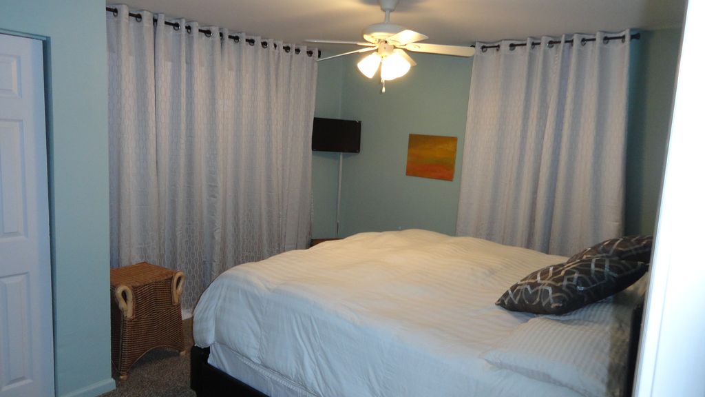 **VALID PROPER IDENTIFICATION (US DRIVER PASSPORT AND/OR PASSPORT) REQUIRED within 12 hours of BOOKING-NO MILITARY ID*****Absolutely no RV's or Mobile Homes. The Island rules are VERY stringent and you will be responsible for any repercussions.***Open floor plan villa type property featuring outdoor front and back decks. New furniture. 1 KING sized bed with new deluxe mattress in master bedroom, Queen mattress in bedroom 2,new seally mattress on sleeper. Quality linens , comforters and extra pillows. 1100 living space square feet, totally space of home 2400 sq ft including decks and garage. Full spacious fully functional kitchen and nice utensils.2 flat Screen tvs with extended cable and movie channels and cartoons. Nice deck on the front and the back of the property.Garage fits one vehicle comfortably and securely with locking entrance and electric garage door. Very easy walk to the beautiful white sand beach with access on both sides of home. House has total room darkener shades for your convenience or open and let the sun shine in.Brand new Washer and dryer with easy access. Non smoking house with no pets so very clean sanitary home. Low sound Central A/C and Heat Brand new natural gas stove and oven.2 pm check in and 10 am check out time and house will be ready to go. Late fee for late check out will be applied. Please no reservations within 5 days notice unless approved by the owners. Please check 'notes' under payments,,, holiday weekend rates and the min stay requirements WE DO NOT ALLOW ANIMALS IN THIS UNIT OR ON THE PREMISES. PLEASE, DO NOT ASK. More details