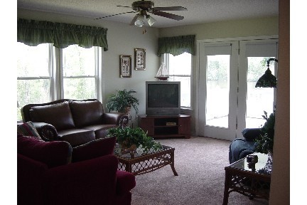 Ever dream of floating around in a houseboat and just taking in all the beauty? Well, that's exactly how you'll feel when you come to 'The Camp'. When you walk into the the living room/kitchen area, you get a 180 degree beautiful waterfront view, complete with grassy islands and sea birds. The beautiful porch/lanai goes almost right up to the water's edge. Kayaker's will just LOVE this place!!!'The Camp' is located near Gulf Shores' white sandy beaches and overlooks a creek which immediately opens into Wolf Bay. If you like doing it all on your vacation such as boating, fishing, kayaking, jet skiing, swimming, going to the beach, shopping at the Tanger outlet mall, this is the place for you. You will love the quiet serenity our community offers. Away from all the hustle and bustle, you can return from your beach trips and truly relax while dining out on your lanai or just gazing at the water views from indoors. In any season, the Camp is the perfect vacation spot for those that love to observe nature. We spot many pelicans, dolphins swimming by, and all sorts of fish and wildlife. Let THE CAMP be your restful coastal vacation spot this year and you'll see,.....you'll want to come back.The 'Camp' is tastefully decorated and is fully furnished with everything you'll need to enjoy a memorable and comfortable vacation to enjoy lots of water activities. You'll sleep like a baby on our comfy mattresses. The smaller bedroom has a VCR with movies/cartoons for kids when the weather won't permit outside activities. You won't pay the high beach prices here, but you are close enough to get there in 10 to 15 minutes, then come home to your own quiet, tranquil creek cottage. You are welcome to bring your boat....as long as it can get under the bridge nearby. Any boat such as a pontoon, kayak, jet ski, 'fish & ski' sized boat would be suitable. You can dock right at the end of the pier. And why not take advantage of getting free seafood! You can catch crabs right at the end of the pier! You can boat up the creek to get to the fresh water fishing/swimming and feel like you are an explorer seeing our virgin Southern waterways for the first time (it's so natural), or go down the creek to turn the bend and make it into Wolf Bay. There's so much to see and do. You won't lack for entertainment in the Gulf Shores' area. I forgot to mention the great seafood restaurants here and not to mention we are 5 min. from the famous Lambert's Cafe'. Or if you'd just rather take it slow and easy....you definitely can here. The tiled lanai is huge and is large enough to hang your hammock and still have enough room for dining and sitting area. The full kitchen has a spacious dining area as well, should you like to dine in a lot. The home is 1,200 sq. feet and that's not including the 30' x 15' lanai. The master bath is spacious and is also accessible to the Living area. You won't want to leave this place once you get here. Much care and consideration has been made in making your stay as comfy as possible because we want you to think of this as 'Your Camp' and come back time and time again. Keywords: Cottage More details