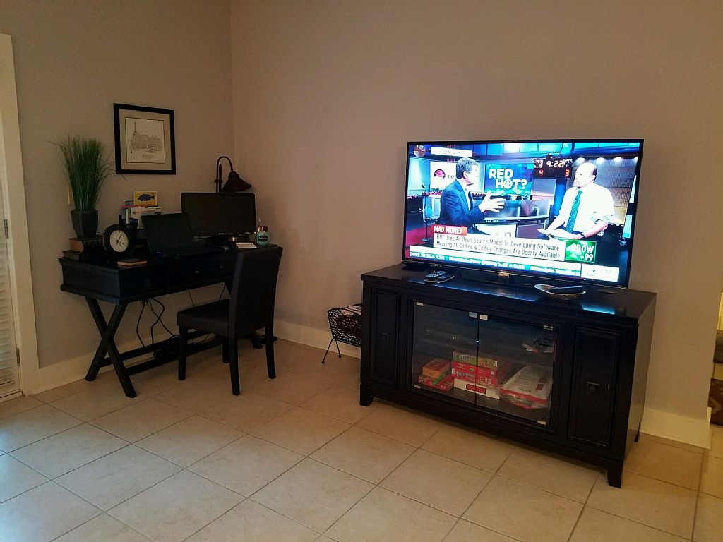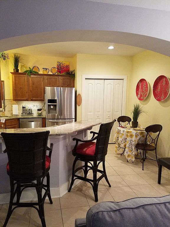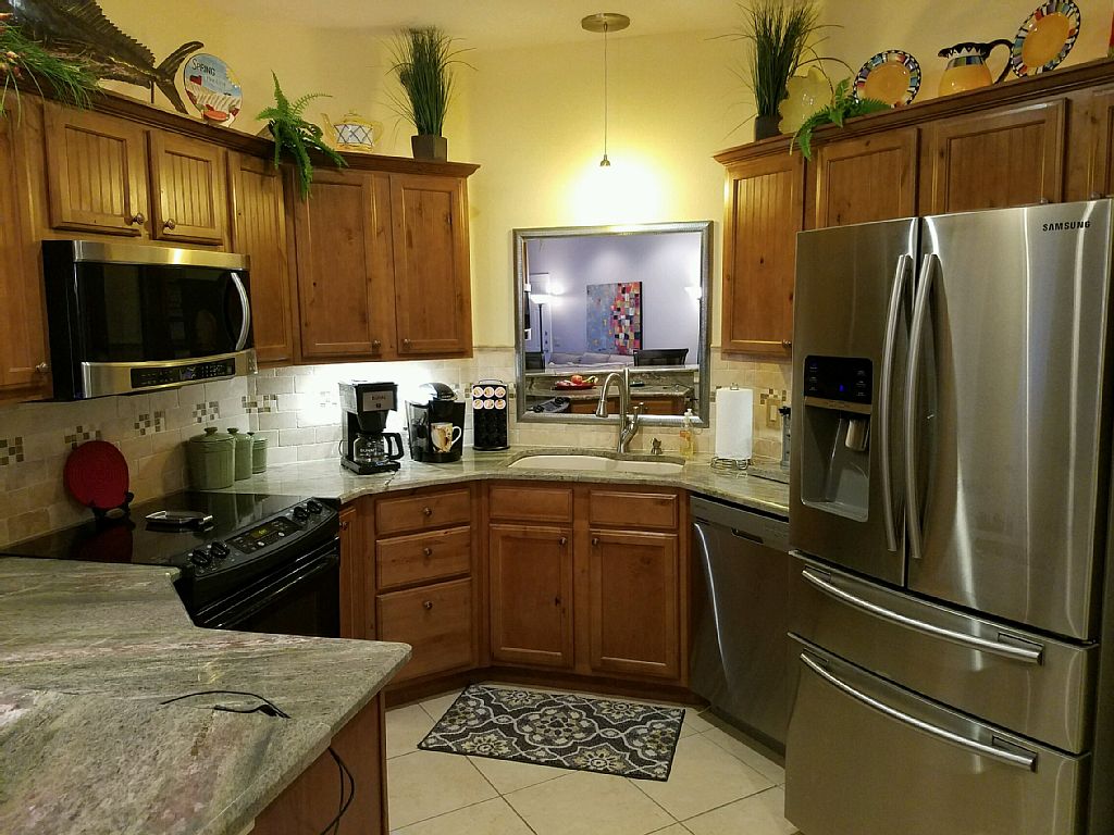 This is your "Sweet Escape", the perfect getaway for family, friends, or favorite groups. It has all the classy, modern style you'll love! Easy to access ground floor unit with two bedrooms and two bathrooms facing the 9th fairway with incredible view of the greens and the ponds - from every window! You'll love the quiet, private porch - perfect for your morning coffee and greens gazing.The kitchen, with its beautiful granite countertops, farmhouse sink, and stainless fridge (w/ice & water in the door), is fully stocked with dishes, glassware, and flatware for 8. Plus pots and pans and serving pieces for the chef in the family. Choose between a Keurig or a Bunn coffee maker to suit morning coffee lovers. Check the pantry BEFORE grocery shopping - lots of staples provided. Bistro kitchen table and chairs for 4 and 2 swivel counter-top chairs = seating for 6. Plus built-in trays in the Ottomans in the living room.The gorgeous Master Suite includes a King bed, sitting area by the window (spectacular views!), 32" screen TV with Blu Ray Player, and luxury bed linens. Private bathroom with luxury towels and wall-mounted hair dryer. Netflix/Hulu ready. Guest bedroom includes a Queen bed, 32" TV with BluRay player and Netflix, and luxury linens. Large bathroom with soaker tub, luxury towels, wall-mounted hair dryer and makeup mirror, and a walk-in closet.Living room boasts a large screen HDTV with Blu Ray player and Netflix ready, office desk with PC screen and printer (we have wifi!), lots of games and books, and a beautiful new sectional with chaise that can comfortably sleep 2. The whole family can snuggle around the sectional to watch movies. Netflix/Hulu ready.Separate laundry room with detergents and softeners provided (including free and clear).Utility closet houses beach chairs, beach umbrella, coolers, ice bucket, and other fun items.Emerald Greens is a gated community, with free golf and golf cart for 2 adults per each condo rental including the fitness center. Free amenities include use of the clubhouse, tanning beds, game room, sauna, hot tub, and swimming pool (see photos).The resort is centrally located to all Gulf Shores attractions, shopping, the beach (10 min. drive), and other golf courses. To name a few: Miniature golf, The Little Zoo that Could, Water World Amusement Park, movie theaters, the Tanger Outlet Mall, Pelican Point Shopping Mall (with Target and Publix), Gulf Shores Sports complex, the Wharf with fine dining and shops, and Craft Farms--an 18-hole championship golf course designed by Arnold Palmer. And be sure to visit "The Hangout"!COMING SOON! OWA Theme Park in Foley, a few minutes drive away, on 20+ acres. USA Today says "the 9th coolest attraction to open" in 2017. First phase opens this summer! More details