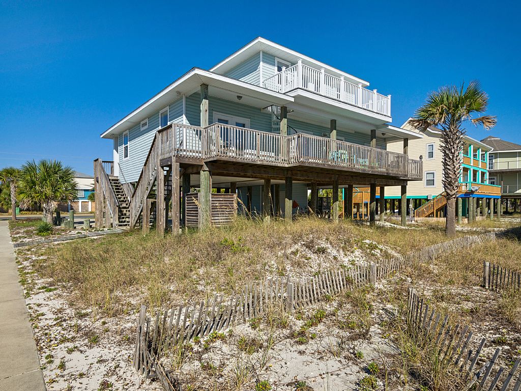 Built in 2008, 6 bedroom, 3 bath, 2 story home, full kitchen. The kitchen downstairs has everything that is needed for cooking (blender, mixer, all types pots and pans and cooking utensils). The first floor has 4 bedrooms, 2 full baths. One bedroom on the first floor has a King, two of the bedrooms have queens, one bedroom has two double beds and there is a queen size pullout couch in the living room. On the second floor there is a full bath, a bedroom with a queen bed and a bedroom with a king bed, the king bedroom also has a refrigerator. The House is located on gulf side of Via Deluna. The road that the beach is on, is located directly behind the house. There is a sidewalk next to the house that takes you to the beach. There is a closet downstairs with beach chairs, beach umbrellas, all kinds of toys and 2 beach cruiser bicycles.Keywords: House