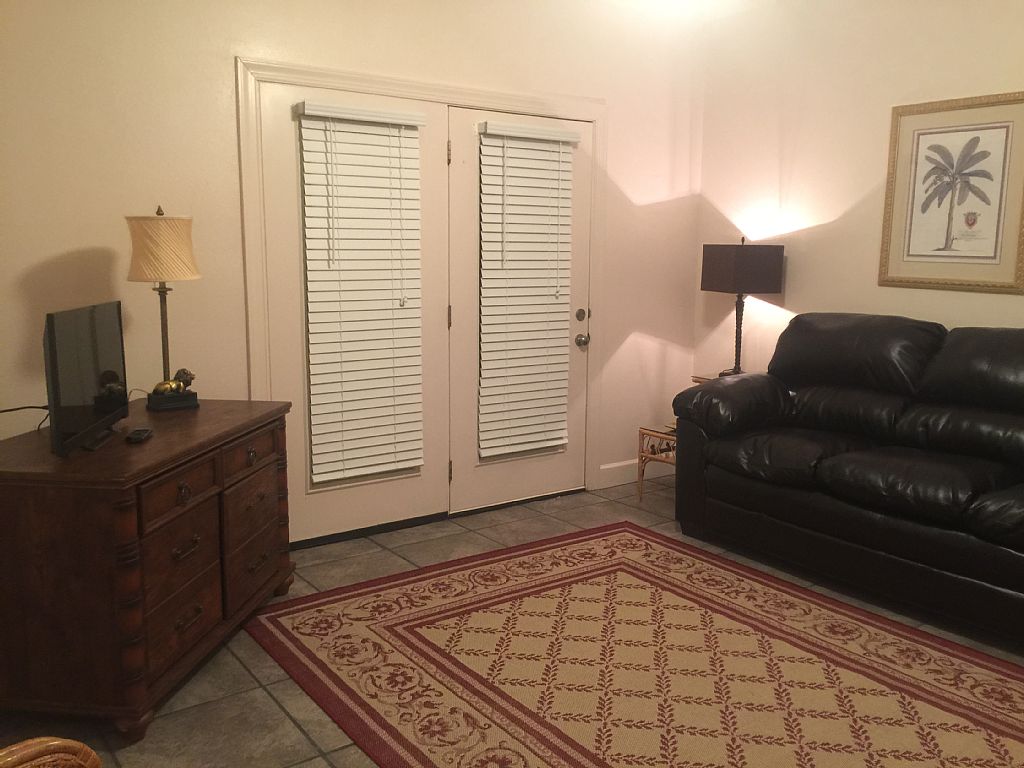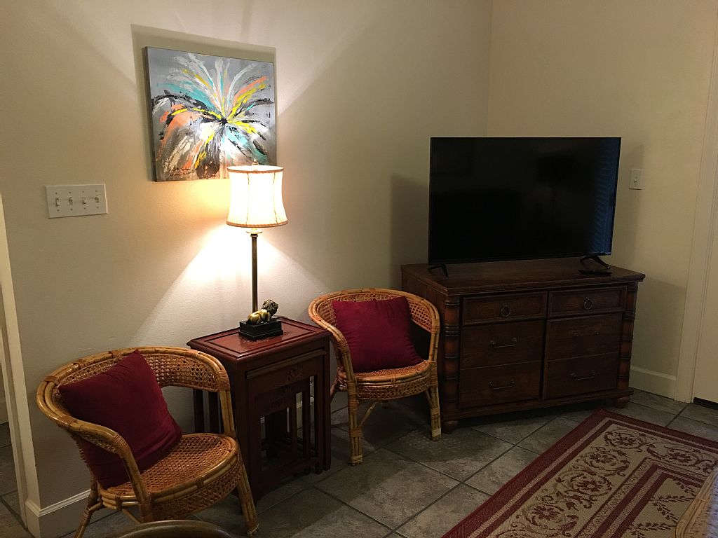 You will love this ground floor unit! An attractively decorated great room and cozy dining area allow access to a screened in patio area. Each bedroom in the the split bedroom floor plan has a queen size bed, attractively covered with 405 count woven cotton sheets, beautiful linens, and a flat screen TV.A washer, dryer, dishwasher, microwave, fully equipped kitchen, and Wifi allow you the comfort of home. Relax by the quiet and private pool area while your little ones safely play in the 2 ft.kiddie pool.