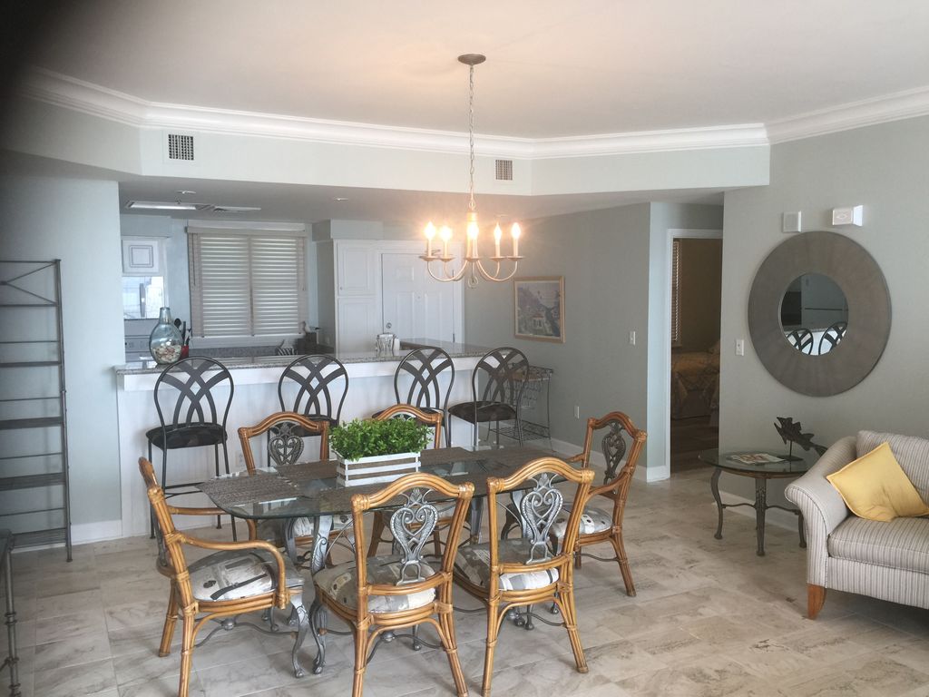 Santa Rosa Towers (unit 502) 3 bedroom / 2 Bath condo. This unit has been completely remodeled and is virtually brand new. Features many upgrades like large crown moldings, hard wood and marble floors and a coastal decorating theme. The Unit boasts some of the most breath taking views of the Gulf of Mexico. Sitting in the condo you get the feeling you are right on the beautiful blue green water. The condo is fully stocked with everything that you need to enjoy a great vacation. Cook your meals in or walk to one of Pensacola Beaches great Restaurants,. Grill on the deck and enjoy the sounds of the surf. There is a also a great pool and tennis court!!There is a no smoking no pet policy