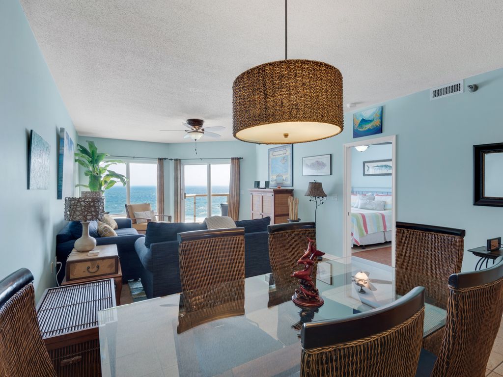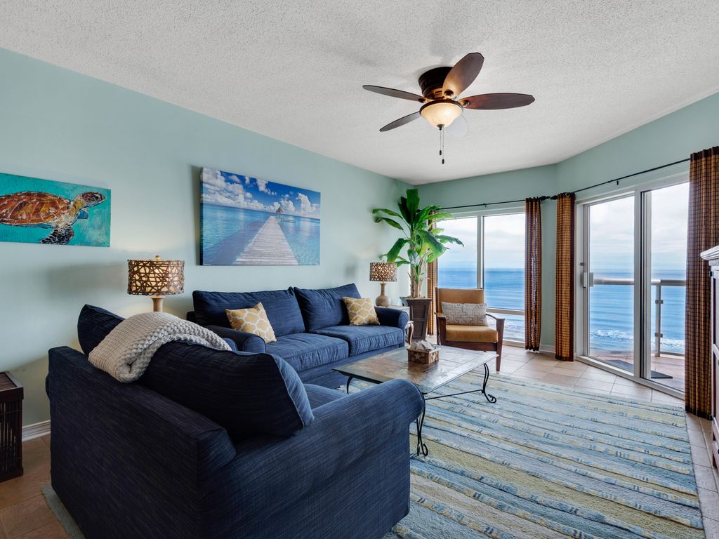 Emerald Isle has the best views and access to the Gulf of Mexico and beach of any other vacation destination on Pensacola Beach, which is exactly why it also has the most high-end rentals every year. Emerald Isle is a 17 story luxury high rise condominium sitting on 5 acres with 300 feet of beach frontage. There is no street to cross to get to the beach, once you walk out the back door to the pool area you are only a few feet away from the sand and beach. Emerald Isle is also conveniently located in the heart of Pensacola Beach, within walking distance of The Boardwalk, restaurants, boutiques, live entertainment, and the famous Pensacola Fishing Pier.This newly renovated unit sits on the 11th floor which is high enough to avoid hearing noise from the pool area when the sliding glass doors are open and also provide spectacular views in all directions of the Gulf of Mexico and Santa Rosa Sound. The unit features granite countertops, tile throughout, new appliances and a new washer and dryer for your convenience. The master bedroom has a king bed, the guest bedroom a queen bed, and queen size sleeper sofa in the living room. Both bedrooms have new wall-mounted flat screen TV's and DVD players. The living room and master bedroom each have an entire glass wall facing the water with sliding glass doors opening to the balcony overlooking the gulf and beach. The balcony features 2 new rocking chairs, love seat, and coffee table for a wonderully comfortable 11nth floor view of the Gulf of Mexico. Linens and towels along with extra are provided throughout the unit. Two large wooden beach chairs with cushions and umbrella are included and reserved with this condo (a $30 per day value). Free WIFI is also included. The ground floor of Emerald Isle features 2 pools (1 heated), a hot tub, sauna, and fitness center. There are 2 elevators with plenty of rolling luggage carts and electonic gated parking which is reserved for guests only.Please call or text me, Tyler Green, at 850-393-6848 oremail me at the address provided in reservations.I have lived in Downtown Pensacola for 10 years, so please allow me to offer assistance with any local information-restaurants, entertainment, local attractions, or any other concierge type questions, please contact me.Keywords: Oceanfront, Free WIFI, King Bed, Queen Bed, Sleeper Sofa, Granite Countertops, Tile throughout, new Washer & Dryer in unit, 3 Flat-screen TV's and 3 DVD Players! More details