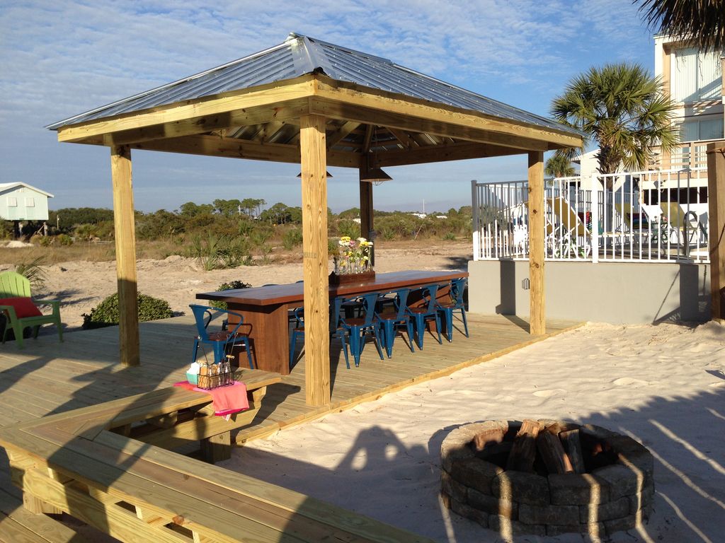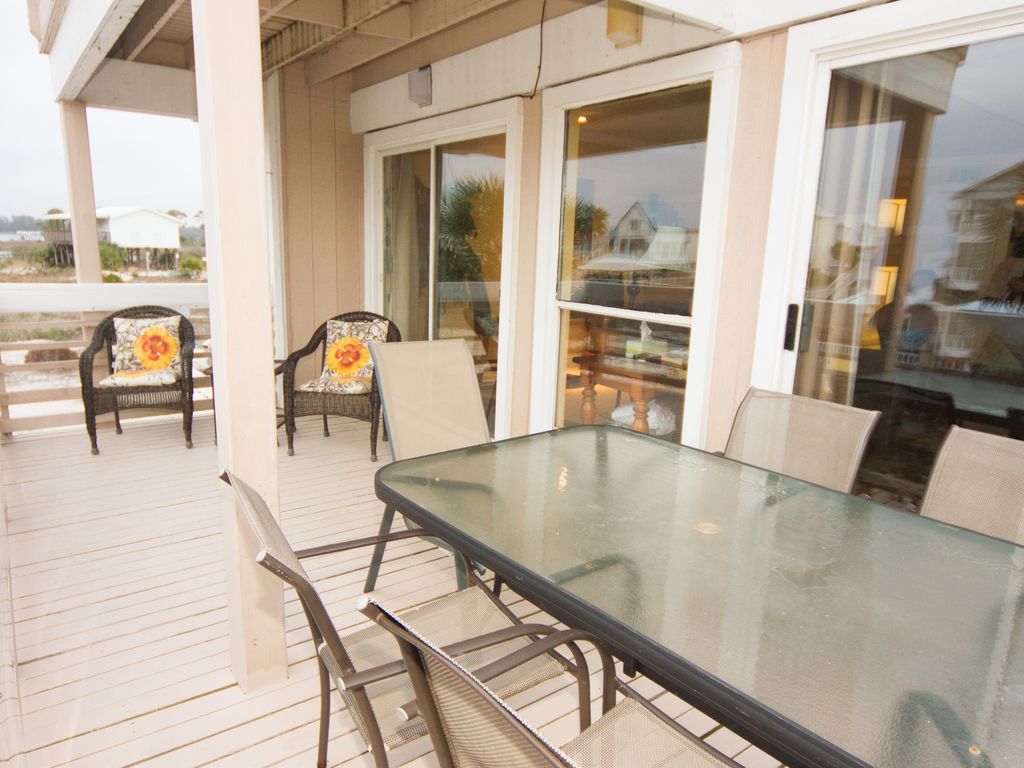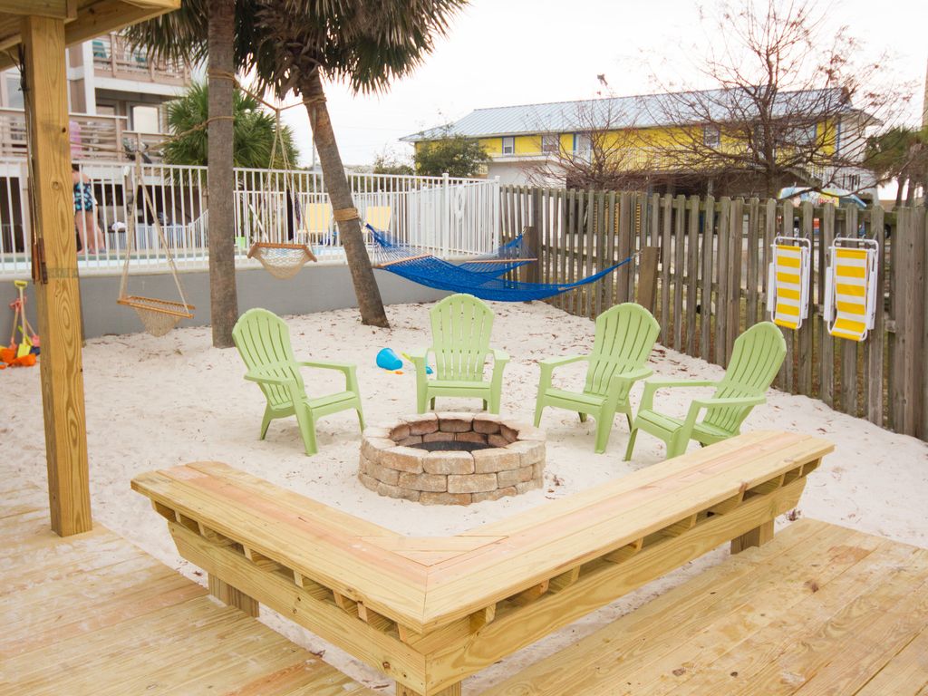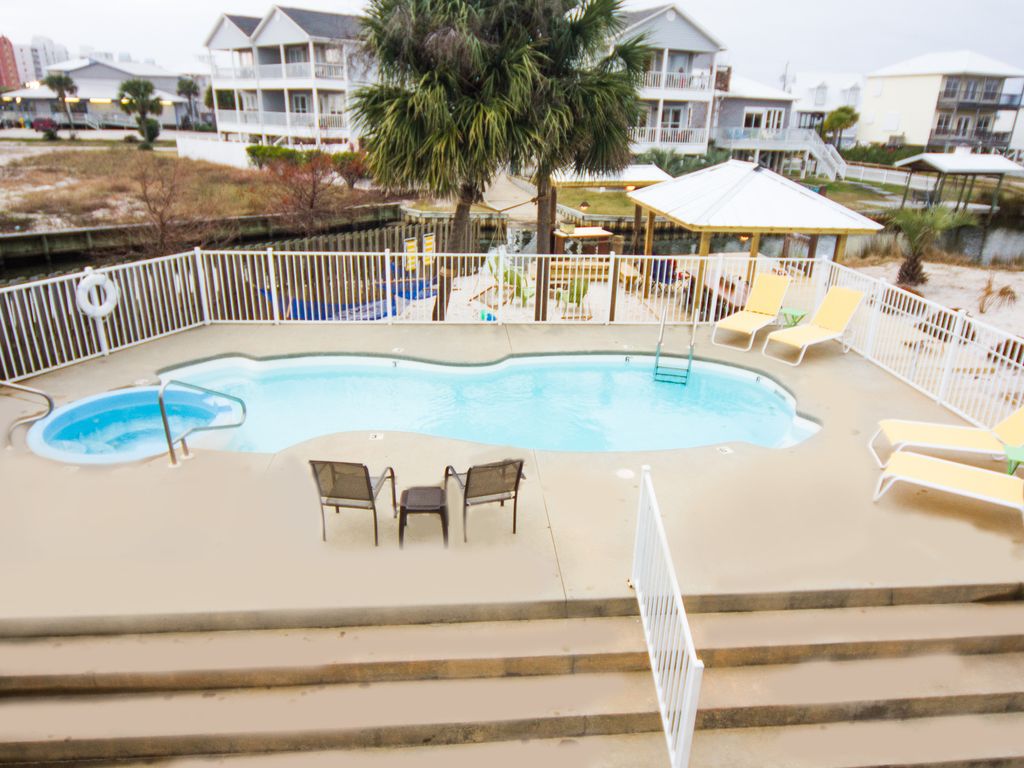 Perfectly located right in the heart of City, Lands End is the ultimate large family beach vacation headquarters! Nestled right on the tip of the 2,480 acre saltwater lagoon, a few hundred yards from Pier 33, directly behind Ike's Beach Rentals, and deeded access to the white sandy beach right across the street by Lana Kai.Lands End is the most unique property in the entire area due to the combination of truly having it all! Private Pool, Hot Tub, Large Decks, Mega Dock, Outdoor Tiki Hut, Private Beach, Palm Trees, Hammocks, Firepit, Horseshoes, Boat Slip, Extra Boat Parking, Covered Fish Cleaning Station, Private Fish Bragging Board, and plenty of intimate space to just hang out! Lands End boast over 4000 sq. ft of living space! Lands End consists of two town homes connected via privacy door, This gives you the option to have separate spaces for your multi family vacation or have the door opened and share two full kitchens, two master suites, 6 total bathrooms and 6 bedrooms! You will also find that we rent these spaces out separately as well as together! This listing is for both units. They each have pretty similar layouts inside, are located right next to each other, are connected with a double locking privacy door, and share the amazing backyard fun zone. Each unit currently has 3 bedrooms that all boast private balconies and sleep up to 12 comfortably. They also each have 2.5 baths, nice full kitchens, washer/dryers, big livingrooms, dining rooms with sliding glass doors to the large decks and great views! Rented together that's 6 bedrooms and an incredible amount of hangout space inside and out! The perfect Multi-Family vacation opportunity! Incredible fishing is right out the back door. Bring your boat and keep it parked at the dock all week for great flounder, speckle trout, and redfish fishing in the saltwater lagoon. Especially fish the lagoon lighted docks at night! Or on a calm day head out the lagoon pass to the entire Gulf of Mexico and its many oil rigs within eyesight of the pass! At the beach directly across the street we look for shells and sand dollars on our morning walks and we catch whiting, pompano, redfish and flounder for dinner while the kids play in the sand and ride the waves! We have a closet full of beach chairs, sand toys, boogey boards, umbrellas and more that your family can use to maximize fun and convenience for playing and relaxing on the beach! Cleaning fish is a breeze at Lands End because we have a covered fish cleaning station with running water, electric and even our own fish hanging bragging board for awesome fish pics! The fishing is incredible! If you can't tell, we are fishing enthusiasts! Just contact us for our favorite shore fishing hotspots and baits. FYI, you can catch baitfish right from the dock! Also we can get you connected to the best inshore, offshore, and even surf fishing guides! Bring your own boat of any size to explore the backwater lagoon. There is a public boat ramp on the lagoon and you can keep the boat parked right at the dock all week! Moving on to other outdoor recreation, Ike's beach rental service is the ultimate neighbor for maximizing fun and convenience on your beach vacation! Rent some of their kayaks, paddle boards, or jet skis for some awesome family fun and adventure in the Little Lagoon! Or for even more adventure they offer parasailing, Segway tours, sand bikes and much more! They also have deluxe layout chairs with umbrellas for resting on the beach as well!!No day is complete without a quick hike over to Pier 33 for some treats with the kids. Established in 1978, Pier 33 is Gulf Shores oldest grocery store. They are located just 3 doors down from Lands End and carry a full line of grocery items, gifts, beach accessories, souvenirs, candy, snacks, bait & tackle, milk shakes, Krispy Kreme donuts, and much more.Our favorite Restaraunt in the entire area is Bahama Bobs! They are a small local joint nestled right on the beach and famous for great seafood poboys and burgers. It's just 1/4 mile walk and you can access from the street or the beach! For a great lunch at a tremendous value, head over to King Neptunes. Gulf Coast Zoo is the "little zoo that could"... Our kids love visiting the zoo just 1.75 miles from Lands End! Lots of animals to interact with and feed! The world famous Gulf Shores Hangout, Souvenir City, and Public Beach is just 3/4 of a mile from Lands End. Lots of activities going on there pretty much all summer long! The city of Gulf Shores Bodenhamer family recreation center has an awesome pool, fitness center, gym, racquetball, game room and much more! They have a weekly family membership rate that is dynamite for active families on vacation! Lands End is the winter vacation getaway for the whole Herman clan- all 30 of us! We love to share this property with other like minded adventurous families and would love to see your vacation photos and stories on Lands End Facebook Page.From the moment you arrive at Lands End till you pick up your last souvenir heading north up Highway 59, we would like to make sure your family has an unforgettable vacation experience together! Any questions you have at anytime about anything don't hesitate to ask. More details