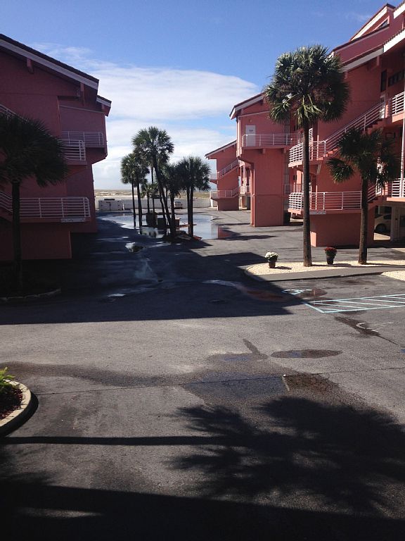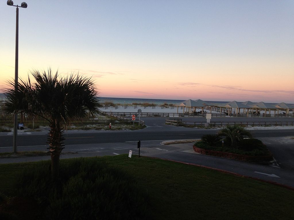 The perfect place for your beach vacation with family and children or just a romantic weekend! Pensacola Beach is a beautiful place with bright white sand, splendid sunsets, and lots of things to do. The specious, open plan 2BR/2B condo has a water view from every corner of almost every room. You can enjoy the view sitting in the patio chairs on the balcony watching for dolphins. This low rise building on the beach gives you some privacy with no building in front of or behind it. Just steps away from both the Gulf of Mexico and the Santa Rosa Sound with a large clean fresh water swimming pool in between. The sound side is perfect for small children. It is shallow for at least 100 yards out. It is also perfect for all sorts of water sports. The unit is nicely furnished with comfortable furniture. It comfortably sleeps 6, provided cable, television, internet, and local phone. The condo has a fully equipped and well-stocked kitchen where you can make a breakfast before you go to the beach in the morning and lots more if you feel like cooking. The washer and drier help to keep your swimming suits and shorts ready to go to the beach at any time. The condo has no carpet at all, it is nice and clean and very easy to keep the sand out. It has a covered 2-car garage right below the unit that keeps your car nice and cool. We also offer some beach gear (umbrellas, chairs, toys). The condo is a one-story unit with no stairs to clime, proves to be very comfortable for the seniors, easy to keep an eye on children, elevator is available for the handicapped. Public gazebos with tables and BBQ grills are right across the street. You can have a nice picnic right on the beach. Palm Beach Club is adjacent to Fort Pickens National Seashore, a federal preserve of ten miles of pristine beaches, great for walking, shelling, watching turtles, dolphins, sea life, birds, and fishing. You can also hike the Florida Trail at Fort Pickens at the westernmost point of Santa Rosa Island. A free trolley runs along the beach starting in May throughout the season. A trolley stop is right in front of Palm Beach Club. Also a paved walking, biking, and jogging path runs the entire length of Pensacola Beach. You can rent scooters, bikes, funny cars, and also jet-skis, and kayaks. There are plenty of fantastic seafood restaurants on the beach. Most of them have playgrounds for children and live music at night. Book your fantastic vacation now! More details
