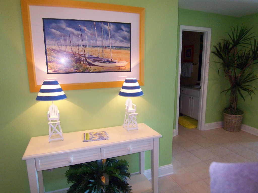 We are able to be at our condo frequently to check on things. We take great pride in it, especially it's cleanliness. It is very much our home away from home. Your every need will be met when you stay with us. Details make the difference!You will enjoy the Lighthouse in general. One of the newest condos in Gulf Shores it has many amenities that you will love. Twin pools outdoors make the decision very difficult each day - 'do we go to the beach or stay at the pools?'. The kids will love the zero entry pool that is just inches deep at the shallow end and a foot or two at the 'deep' end. The fountains that shoot high into the air just fascinate the little ones. Then there is the deep pool for serious swimming. There are two heated hot tubs, one at either end of the twin pools. On top of all that there is the indoor, heated pool for days that are a bit chilly or rainy. You won't miss a day of swimming no matter what the weather. There is an indoor fitness center and spa for your health and pleasure. There are three levels of parking for your convenience. Two are under cover to protect you from the elements. All are convenient to the four elevators on site.From our custom draperies and cornices, to the quality of our mattresses. From our custom built bunk beds, to the quality of our furnishings. Most of our floors are tile. Only our two bedrooms have carpet. We put tile on the wall at the kitchen dining bar to avoid the ugly marks made when shoes mar the wall there. The ceilings are high and the rooms spacious. There are ceiling fans in every room. I'll give you a quick tour of our condo and hope you will like what you read and what you see in our photos.From the minute you walk into the front door you are drawn to the breathtaking view of the Gulf of Mexico straight in front of you. With floor to ceiling windows and sliding glass doors you walk there immediately to look out. When you are standing there you notice the size of the balcony. This is no little balcony. It stretches the full width of the condo and extends in front of the master bedroom as well as the living room. There is a table and chairs there for dining as the sun rises or sets. Take your pick - coffee or cocktails! Both views are spectacular! Penthouse views without the penthouse price!!You will walk past the bunk room as you enter, and you'll notice that it has a door! This is especially nice when you get the kids to bed early. You can close the door, tell them good night and go sit on the balcony or in the living room and enjoy the evening without bothering them. They have their privacy and you have yours!The foyer is a generous size with room for a table where you can place your keys and your purse when you come in. There is plenty of room for the rolling cart you will bring up from the lobby as you move in and out or bring in groceries and supplies.The laundry room is just beyond the bunk room on your right. It is huge with full size washer and dryer. It offers plenty of space to store those beach toys, rafts, and other large items. There is an ironing board and iron for your convenience.The kitchen is next on your right. In it you find granite counter tops and ALL of the things you need and want in a kitchen. We hand picked our dishes, cookware, glasses and utensils. Everything is top quality, coordinated and beautiful. There is a pantry in addition to cabinet space. The refrigerator has an ice maker. We supply many small appliances such as blender, toaster, mixer etc.There is a dining table that seats four and three more bar stools for casual dining. The colors should be pointed out also. The decor is beachy without being too 'cute'. The primary colors will make you smile every time you walk in - sunny yellow, bright red and royal blue.The living area is generous, with a queen sofa bed and comfortable chairs. There are lamps for snuggling into your chair to read. There is a VCR-DVD on the flat screen TV for your viewing pleasure. Each bedroom also has a flat screen TV with DVD player.The master bedroom is luxurious with it's king-size bed, custom bedding and matching draperies. It connects via a dressing room to the large master bath with a jacuzzi tub and seperate shower stall. The dressing room has double sinks and plenty of drawer and counter space. There is also a huge walk in closet.The guest room also has a King bed and again custom bedding with matching draperies. The guest bath opens to the guest room and also the hallway. There is a tub/shower combination with a colorful shower curtain that again is custom made. The Lighthouse is on the property where the old Lighthouse Motel once stood. Many of you will remember seeing this in years gone by. It's literaly a few steps away from The Sea and Suds; a traditional seafood restaurant where you wait or dine 'over the beach'. You and the kids will want to see the all-new Hangout. This is another memory from the past that has been brought back. Oh what fun!! Go north on Highway 59 you will find Lulu’s, owned by Jimmy Buffett’s sister, Lucy Buffett. Jimmy himself shows up from time to time.We are also located just a few miles away from Supermarkets, the Wharf shopping center, movies, Wal-Mart and Target. Keywords: Condominium More details