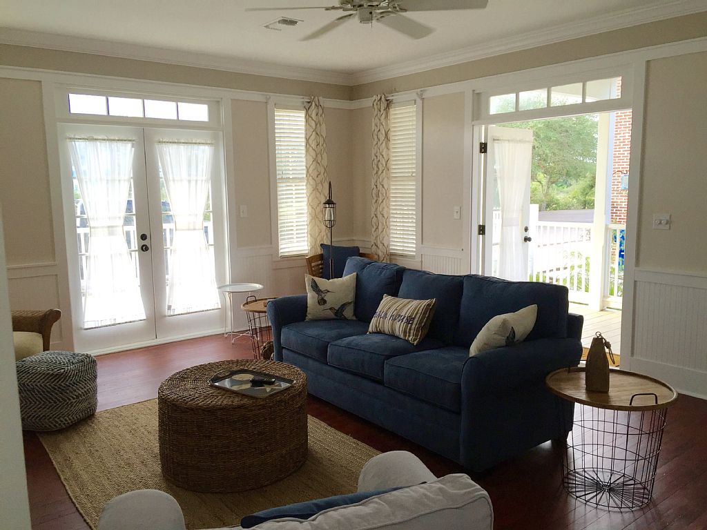 NEW to the Orange Beach Rental market, Hummingbird House & Cottage offers both privacy and relaxation in a convenient central location, with Private Beach Access right across the street. Located in the award winning Village of Tannin, this property boasts southern charm with stylish modern updates, including free WiFi. The main house sleeps 6 comfortably and we offer an optional cottage efficiency to rent with the house that is ideal for teens, in laws, or a private getaway for parents! Downstairs, enjoy a light filled, open concept living space, reflecting an airy decor which includes a queen sleeper sofa and flat screen Smart TV. Reclaimed heart of pine flooring throughout adds the right amount of warmth and character. The modern kitchen features granite countertops, stainless steel appliances such as a side by side refrigerator with ice maker, and a french country style dining table that comfortably seats 6. You will find special touches such as a Keurig coffee machine and other conveniences to make you feel at right at home in Hummingbird House. Right off the kitchen, there is a laundry room, extra large pantry and half bath. Wander upstairs and you will first find the Master Suite with en suite bathroom. This extra large suite has a lovely king size bed, ample closet space, 2 sets of french doors leading out to the second floor veranda with Gulf views, and a overstuffed chair where you can curl up with a good book. The second bedroom offers a queen size bed, as well as ample closet space and french door access to the veranda. You will find a newly updated second full size bath right next to this bedroom. In the hallway, you will see the "ship ladder" leading up to a cozy loft with an oversized window seat which allows you to enjoy a 360 degree view of both the Gulf of Mexico and Gulf State Park. If you opt for including the cottage with your reservation, you will find a queen size bed in the loft, bathroom on the main floor, along with a relaxing seating area that boasts a loveseat, ottoman, vanity with sink, refrigerator, and a coffee maker.***Note that the cottage is not rented separately as we respect your privacy while vacationing. If you are interested, please email us directly for the add on rate of the cottage.Outside, enjoy the community lake directly across from the house, the low traffic brick paved streets and the white picket fences, all from your front porch swing. Maybe you prefer a garden view and will spend your time on the more secluded deck and patio right off the kitchen.In addition to all that Hummingbird House & Cottage offers, you will be thrilled the numerous amenities available while staying in Village of Tannin, such as Private Beach Access, the Olympic-size pool, 13 miles of bike trails and kayaking access. Kids can safety ride their bikes around the neighborhood. There's no need to compete for parking or the elevator like in those high density buildings and resorts. One can truly relax and isn't that what a beach vacation is all about?Book your beach getaway today and enjoy your stay at Hummingbird House & Cottage! More details