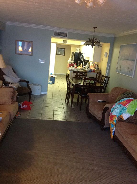 This condo has replaced all counter tops with granite and new appliances, As well as new furniture in spring 2015. It has two balconies. The master bedroom and the living room each open up to a balcony that faces the beach. The front bedroom has a sepate balcony facing the roadway and the bay. Ceramic tile thru out, the only carpet is in the bedrooms. The pool is beautiful shaped with a fountain in the middle. Check in time is after 3:00 p.m. Check out time is before 10:00 a.m.