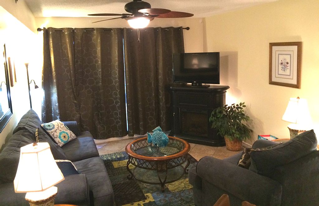 Harbour Place is low-density condo living at its best. One of only 65-units, there is always lots of room on the short walk to the beach. You will be delighted that this condo is a two bedroom, two bath flat with a private master bedroom/bath and ample second private bedroom. A really comfortable sofa, that converts to a queen sleeper sofa in the den. Both bedrooms feature luxurious King-Size beds w pillow-top mattresses. Three couples, or a family of 6 (8 if you are real good friends) can enjoy the friendly accommodations. Remodeled recently and tastefully decorated, the condo features ceramic tile floors in kitchen and living room, carpeting in both bedrooms, updated appliances; including refrigerator, stove/oven, microwave, ice-maker, dishwasher and washer/dryer. Roomy counter tops, and high quality fixtures are found throughout. Did I mention a new Big screen LCD TV, and a new Electric fireplace and heater in a matching mantle set! TV's in both bedrooms and a 40' big screen televisions is featured in the living room, over the mantle enclosing a new electric fireplace/heater. The breakfast/snack bar with comfortable stool seating saves room, and enhances the experience. A glass-top dining table for 4 makes for romantic dinners. Located on the beach side, with a full view of the beach, this spacious condo makes a wonderful balcony experience on the specially selected balcony furniture in the afternoon shade, or to enjoy the morning sunrise. The indoor/outdoor pool and hot tub are on the beach and feature plenty of comfortable lounge chairs Convenient BBQ, and covered parking make this resort a great value. The Orange Beach/Gulf Shores area has a wide variety of activities including golf, boating, fishing, jet ski and pontoon boat rentals, para-sailing, amusement parks, and a zoo. Tanger Factory Outlet stores are a short drive to Foley, and a wide selection of convenient seafood and steakhouses and family restaurants offer some of the freshest fare on the coast.. Wildlife preserves, seaside parks, and hiking trails are available for your enjoyment and free to the public. Only a 20-minute drive, historical Fort Morgan makes a great half-day excursion. We take our family and friends often, and they talk about it for weeks after the trip, and I'm sure you will have a great time, at a great value too!Use Send Owner Email to split payments and chose the eCheck option INSTEAD of credit card to get a1% discount rebated with your returned deposit!Keywords: Low rates, on the beach, ample covered parking, condo with pool view from balcony, 2-bedroom w/Sleeper Sofa in Den, 2-baths, elevator, new furniture, brand new appliances, completely renovated and updated, great vacation property, dinning, living area, convenient, restaurants, easy access, comfortable and handy-cap ready, fine living, hot tub, close to parks, zoos, water parks, jet, skiing, boating, golf, shopping, para-sailing, kids welcome, safe walk ways, sun deck, big screen TV, patio, WiFi/high-speed internet available, easy, fun, discounts for week/month stays, white sand beaches, air conditioning, great deal, special vacation, nice, cozy value, week/month rates, tile floors, carpeting, summer rental, clean wood trim, chairs, table, apartment w/ kitchen, washer, dryer, shower, WiFi. More details